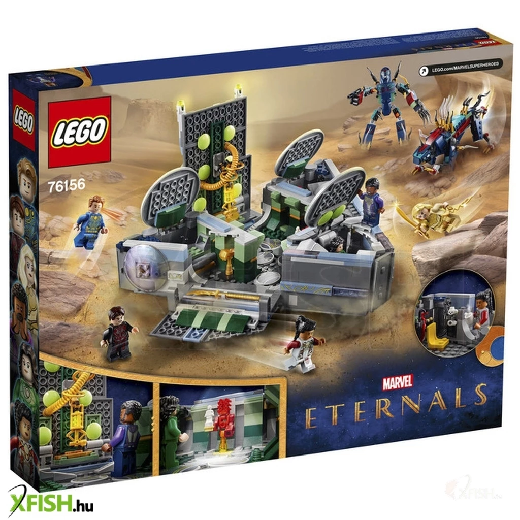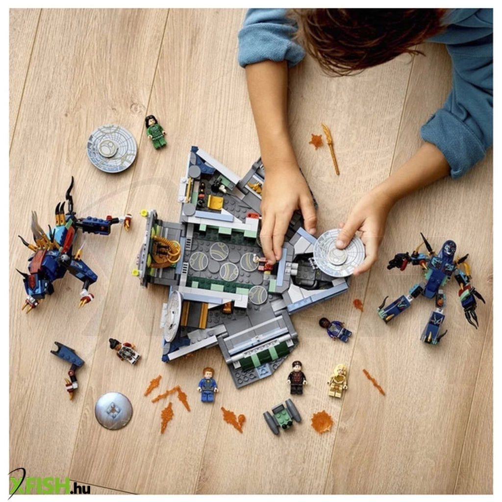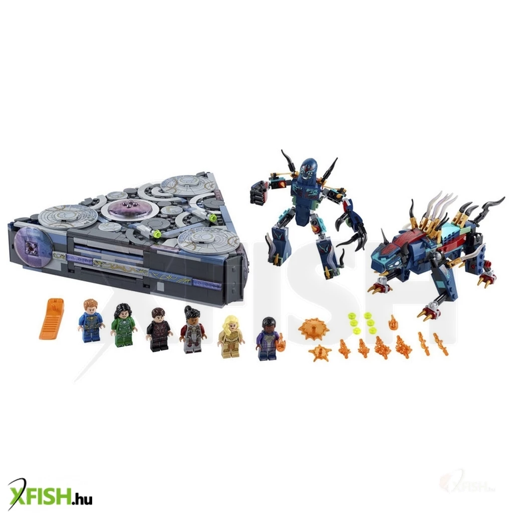 A Lego(R) Marvel Az Örökkévalók készlet a több, mint 22 cm űrhajó mellett, 6 Lego(R) figurát és 2 Deviáns akcióbábut tartalmaz.