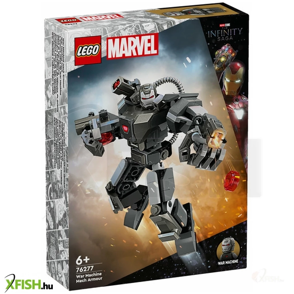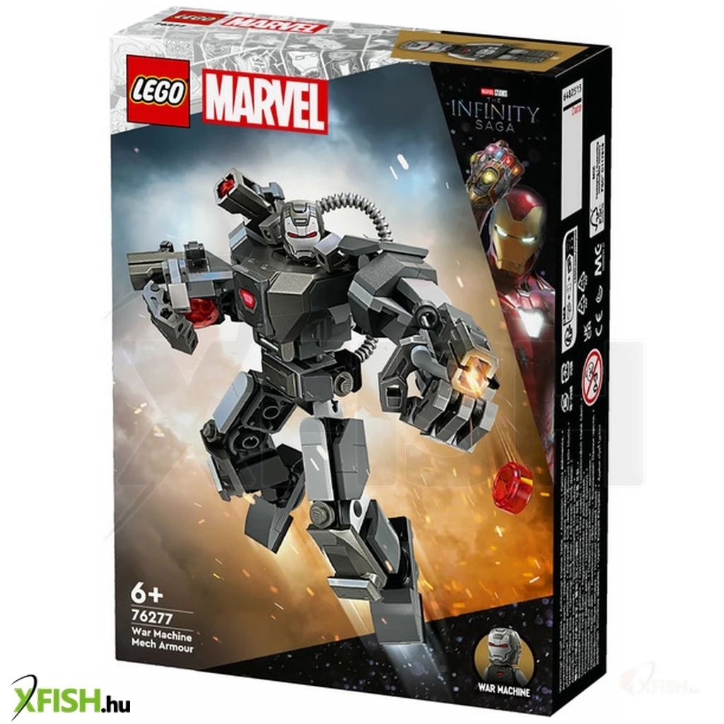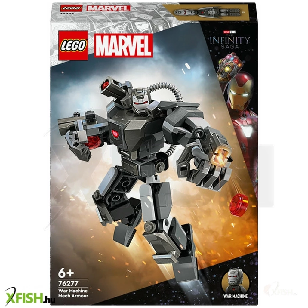 A Lego(R) Marvel Hadigép robotpáncél (76277) megépíthető játékkészlet egy összerakható, csuklós robottal, korongvetőkkel és minifigura pilótával várja a 6 éves vagy nagyobb fiúkat és lányokat. A robot mellkasának nyitásával feltárul a pilótafülke, ahová a Hadigép minifigura-pilóta kerül. A szetthez 3 korongvető is tartozik – 1 a robot vállán és 2 a karjain – , és a hátán egy tárolódoboz is található, ahol az extra töltényeket tarthatod. A beállítható Marvel figurának csuklós karjai, lábai és kezei vannak, így a Hadigép és a robotharcosok rajongói véget nem érő kalandokban vehetnek részt. A gyerekek fokozhatják a játéklehetőségeket, ha a választék más Lego Marvel robotjaival kombinálják a szettet (ezek külön kaphatók). Az extra digitális élményért pedig, az építők felnagyíthatják és elforgathatják a modellek 3D-s változatát, és követhetik a haladásukat a vidám és intuitív Lego Builder appal.