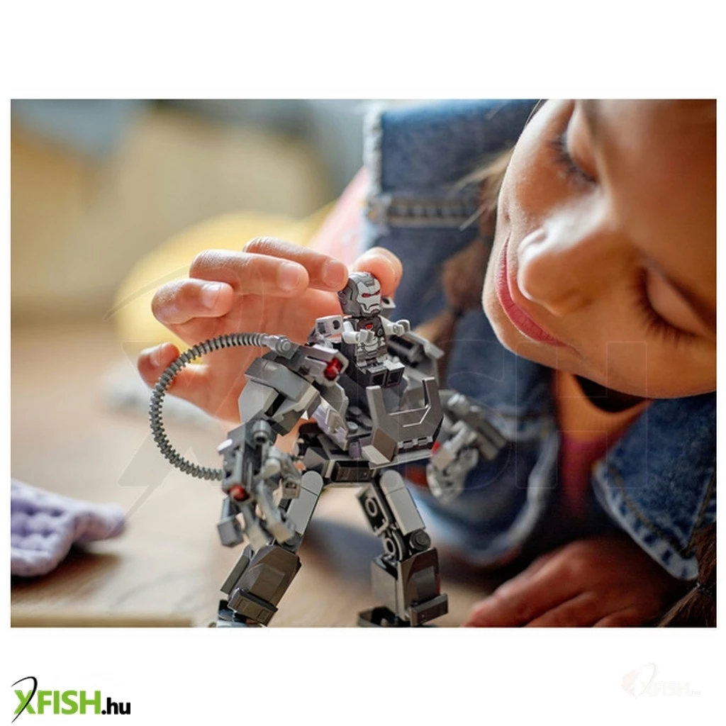 Megépíthető Lego(R) Marvel Hadigép robotpáncél, csuklós felépítéssel a dinamikus akciókért, 3 korongvetővel, egy lőszertartó táskával és minifigura pilótával.