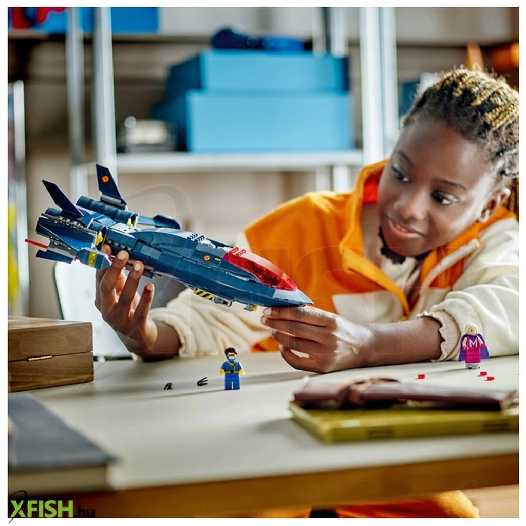 Lego(R) Marvel X-Men X-Jet (76281) a legmenőbb közlekedési mód a szuper menő repülők, a Lego Marvel-játékok és a Marvel Studios X-Men ’97tévésorozat rajongói számára. Ha egy vagány Lego Marvel építőjátékot keresel ajándékba 8 éves vagy annál nagyobb gyermekeknek, akkor az X-Men X-Jet megépíthető harci játékrepülőgéppel még szuperebb szuperhősük lehetnek. Ez a lenyűgöző repülőmodellépítő-készlet, amely az X-Men ’97 című sorozat repülője alapján készült, véget nem érő, magasan szárnyaló kalandokra invitál Küklopsz, Zsivány, Magneto és Farkas minifiguráival. A megépíthető akciójáték kettős pilótafülkéjébe összesen 4 minifigurának van hely, a gép mindkét oldalán 2 korongvető, a szárnyak alatt pedig 2 rugós kilövő található. A megépíthető repülőgépmodellhez 2 levehető tároló is tartozik, ahol a gyerekek a plusz korongokat és Farkas karmait tárolhatják, amelyeket a minifigurához is hozzá lehet illeszteni. Az extra digitális élményért pedig, az építők felnagyíthatják és elforgathatják a modellek 3D-s változatát, és követhetik a haladásukat a vidám és intuitív Lego Builder appal.
