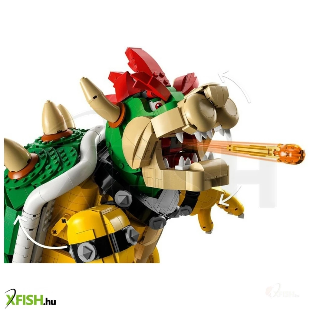 Csodáld meg a Koopák királyát, miközben megépíted, kiállítod és játszol a Lego(R) Super Mario™ A hatalmas Bowser™ (71411) szettel! Emellett olyan funkciók is várnak rád, mint a tűzgolyókilövő és egy gomb, amivel irányíthatod Bowser fejének és nyakának a mozgásait, de még a karjai és az ujjai is mozgathatók! Interaktív játék Állítsd ki A hatalmas Bowsert a kockákból épült harci platformon, amin 2 ledönthető tornyot, egy rejtett POW-kockát és egy interaktív elemet is találsz. Kombináld A hatalmas Bowsert és a platformot egy Lego Super Mario kezdőpályával (71360, 71387 vagy 71403 – külön kaphatók) a Lego(R) Mario™-val, Lego(R) Luigi™-val vagy Lego(R) Peach™-csel való csatákhoz! Remek ajándék a Super Mario™ rajongóknak, amit az egész család élvezhet. A készlet egy lépésről lépésre vezető útmutatót is tartalmaz, ami végigkísér a komplex építési folyamaton.Nézd meg a gyűjtemény többi, felnőtteknek szánt Lego készletét is! Egész biztosan vár rád egy inspiráló építési projekt.