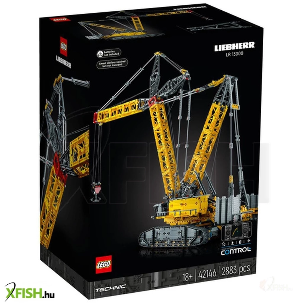 Hatalmas és erős. Ez lesz a következő építési kihívásod. A felnőttek számára készült Lego(R) Technic Liebherr LR 13000 lánctaplas daru (42146) modell 99 cm magas, és a Lego Technic választék egyik legnagyobb készlete (2023. augusztusi állapot szerint). Részletgazdagságával és valósághű mozgásával a világ egyik legerősebb daruja előtt tiszteleg. Úgy mozog, mint egy igazi daru Merülj el a részletekben és az építésben a készlettel, amely a világ egyik legerősebb daruja előtt tiszteleg! Majd fogd munkára a modellt a control+ alkalmazással, hogy megtudd, mire képes ez a hatalmas szerkezet. A valósághűen működik a darukormányzás, a forgótengely, a gém, a csörlő és a súlyérzékelő segítségével. Ez a te asztalod! A modell a felnőtteknek szánt Lego készletek gyűjteményének része azoknak, akik értékelik a tökéletes tervezést. Legyen egy kézzel fogható projekt saját magadnak, vagy ajándék egy darurajongónak, ez a Lego Technic építőkészlet örömteli építést és egy felfedezésre váró, részletgazdag modellt kínál.