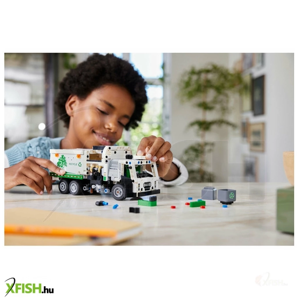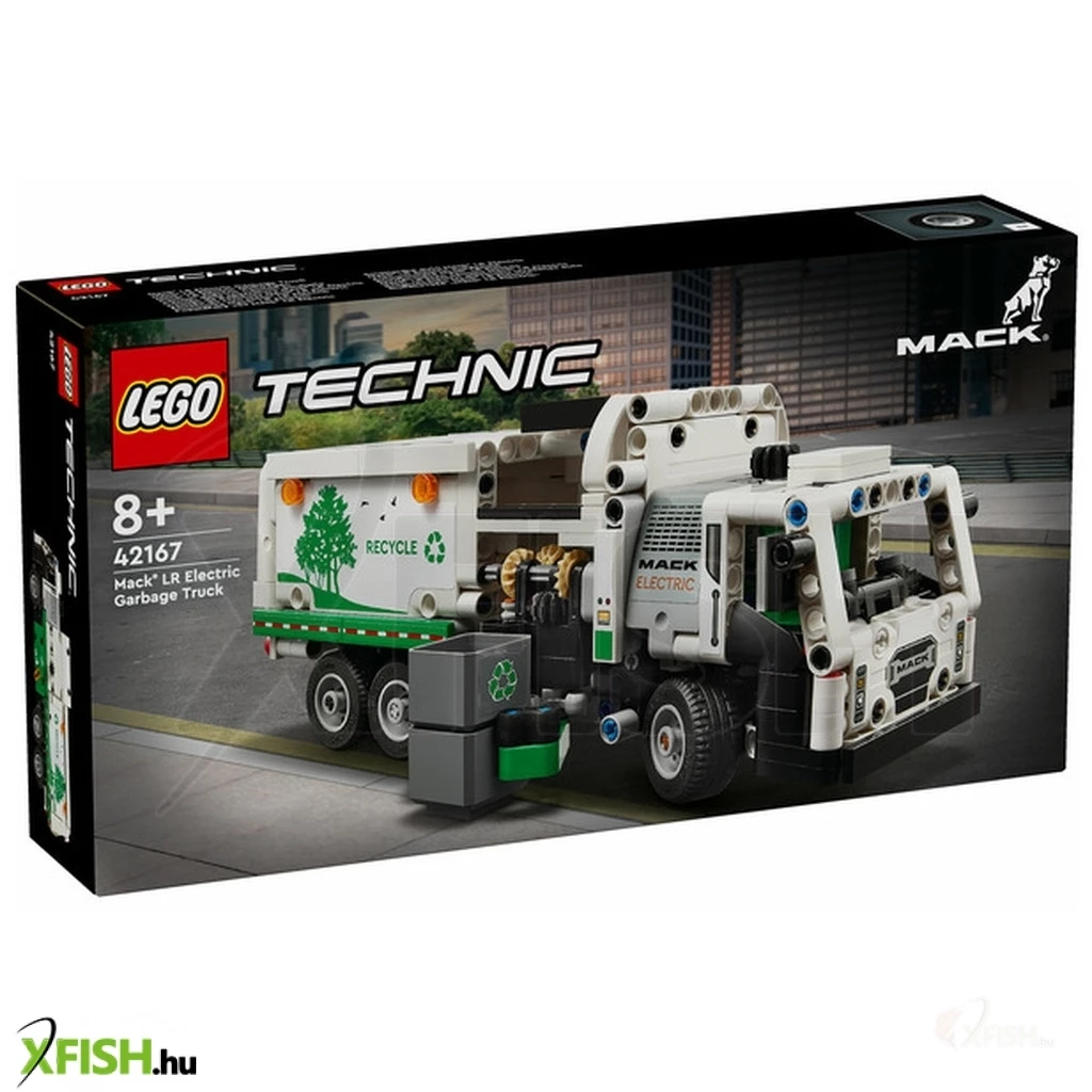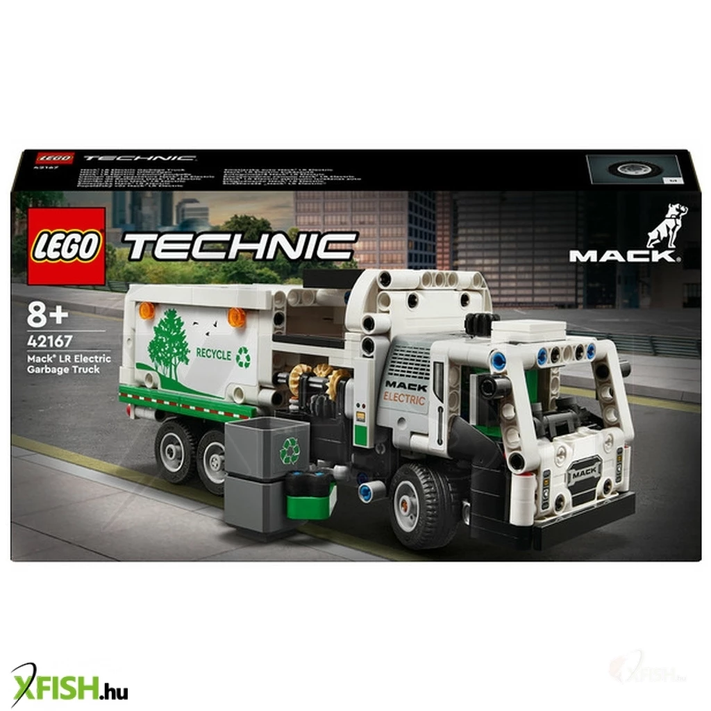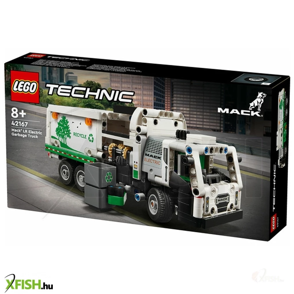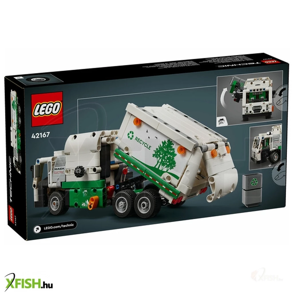 Inspiráld a gyermekeket, akik szeretik a járműveket, hogy fordítsanak figyelmet a zöld energiára és arra, hogy tiszta legyen a város, amiben a Lego(R) Technic Mack(R) LR Electric kukásautó (42166) játék lesz a 8 éves vagy annál nagyobb fiúk és lányok segítségére. Ezt az újrahasznosító teherautót a csúcstechnológiás Mack elektromos kukásautó ihlette, és a mozgása, megjelenése is valósághű. A modell megépítése után a gyerekek élvezhetik a kreatív játékot, miközben felfedezik, mit tud a teherautó. A ajtók kinyithatók, és a gyerekek a fülke tetején lévő sebváltóelemmel a megfelelő pozícióba kormányozhatják a teherautót. Pont, mint az eredeti járműnek, a modellnek is oldalsó rakodója van, amellyel meg lehet fogni, fel lehet emelni és meg lehet dönteni a kukákat. A gyerekek eljátszhatják, hogy elszállítják a szemetet, és kiürítik azt. A készlet szemeteskukákat és szemételemeket is tartalmaz, hogy támogassa a fantáziadús játékot. A Lego Technic építőkészletek valósághű funkciókkal ismertetik meg a fiatal Lego építőkkel a mérnöki munkát. Adj a gyermekek kezébe egy izgalmas építési kalandot a Lego Builder alkalmazással! Itt ráközelíthetnek a modellre, és 3D-ben el is forgathatják azt, miközben követhetik az építés menetét.