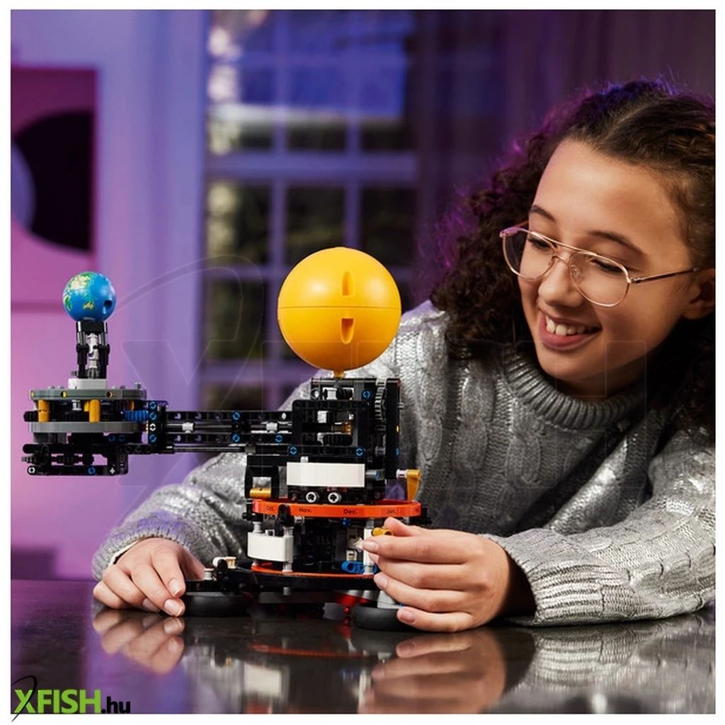 Ha a gyermeked érdeklődik a Naprendszer iránt, akkor nem fogsz csalódni a Lego(R) Technic A Föld és a körülötte keringő Hold (42179) gyermekeknek készült játékszettel! Ez a Lego(R) kockákból építhető játékkészlet olyan valósághű jellemzőkkel rendelkezik, amelyekkel a 10+ éves fiúk és lányok megépíthetik és kipróbálhatják az interaktív szettet, és megérthetik az olyan fogalmakat, mint a Föld és a Hold pályája, a Föld gravitációs ereje, és hogy a keringés miként befolyásolja az évszakokat. A készletben található egy forgótengely, amelynek fogatásával a gyerekek utánozhatják a keringést. A nyomtatott hónapok és holdfázisok segítségével be lehet mutatni a Föld, a Nap és a Hold állásait az év során. Ez a szuper Lego szett remek ajándék lehet olyan gyermekeknek, akik szeretik a bolygós játékokat.