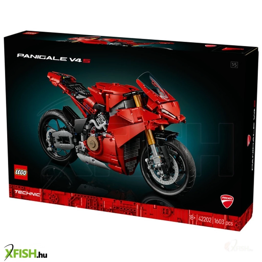 Motorkerékpáros ajándékötlet a Ducati rajongóinak. Építsd meg a stílusos Ducati Panigale V4 S részletgazdag másolatát és a bemutatóállványt!Verjen a pulzusod a versenyzés ütemére a felnőtteknek készült Lego(R) Technic Ducati Panigale V4 S motorkerékpár (42202) építőszettel! A lenyűgöző részletekkel és valósághű jellemzőkkel a modell az eredeti Ducati Panigale V4 S előtt tiszteleg: ez a motorkerékpár a Ducati-istálló legnagyobb teljesítményű és leggyorsabb versenymotorja. Fedezd fel az első és hátsó felfüggesztést és a kormányzást! Nézd meg a 3-sebességes (plusz üres) váltópedált! A hátsó kerékkel mozgathatod a láncot, amely a váltóhoz és a V4-es motorhoz kapcsolódik. Az ikonikus Ducati-piros színben tündöklő modell szuper ajándékötlet a motorkerékpárok rajongóinak.