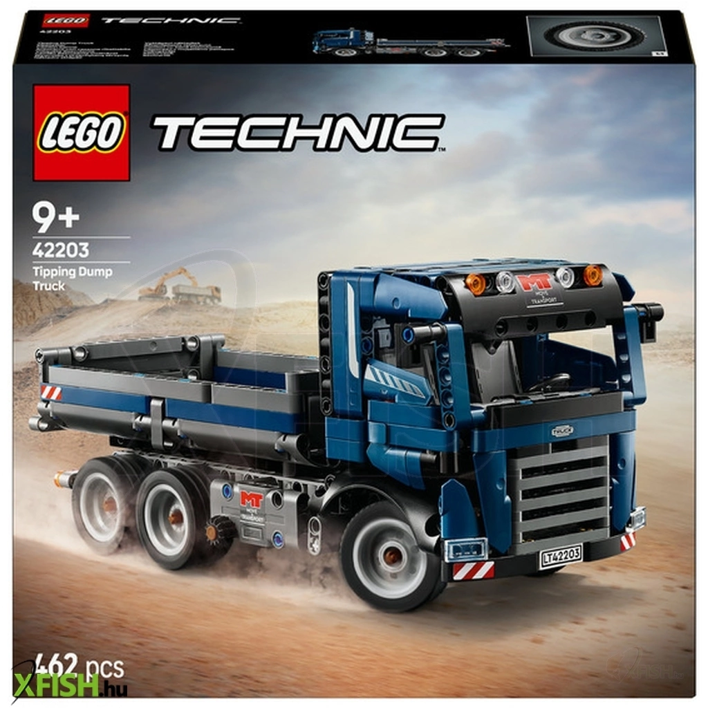 A LEGO® Technic 42203 Billenőplatós teherautó egy valósághű, mérnöki szemléletű építőkészlet, amely izgalmas építési élményt és interaktív játékot kínál. A részletgazdag modell működő billenőplatóval rendelkezik, amely az oldalsó mechanika segítségével felemelhető a rakomány leürítéséhez, emellett irányítható kormányzással és masszív kialakítással teszi még élethűbbé az építkezési jeleneteket. A Technic elemek révén a gyerekek játék közben ismerkedhetnek a mechanikai megoldásokkal és a járművek működésével, miközben fejlődik a problémamegoldó képességük és a finommotorikájuk. Ideális választás járműrajongóknak és minden fiatal építőnek, aki szereti a működő modelleket és a kihívást jelentő építést.