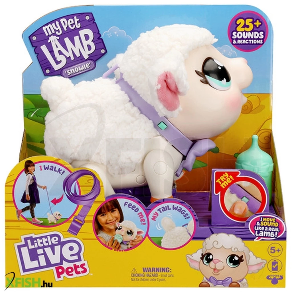Little Live Pets - Barika - Több mint 25 féle hanggal és reakcióval Snowie lesz a legaranyosabb háziállatod! Úgy mozog és olyan hangokat ad ki, mint egy igazi báránybaba! Etesd meg a kis üvegéből, öleld meg és reagál az érintésedre! Figyeld, ahogy a farkát csóválja, miközben sétál! Snowie rengeteg vicces és édes hangot ad ki – béget, kacag, böfög, szipog, tüsszent, és még egy aranyos pukizást is kiadhat! Snowie-nak gyapjas fülei és farka van, amelyek ficánkolnak, amikor mozog. Sétáltasd a pórázával, vagy figyeld, ahogy saját zenés dallamaira mozog és táncol!