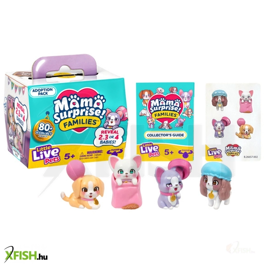 A Little Live Pets Mama Surprise örökbefogadás egy izgalmas és szívmelengető játékélmény, ahol a gyerekek Mama Figurát „örökbe fogadhatják”, gondoskodhatnak róla, majd egy titokzatos házikó segítségével felfedezhetik a rejtett kiskutyákat; amikor Mama bekerül a házba és az ajtó becsukódik, váratlanul 4–6 kisbaba jelenik meg, akiket a gyerekek sajátjukként szerethetnek, játszhatnak velük, gyűjthetik őket és kreatív történeteket alkothatnak velük, miközben fejleszti a gondoskodást, képzeletet és szerepjátékot.
