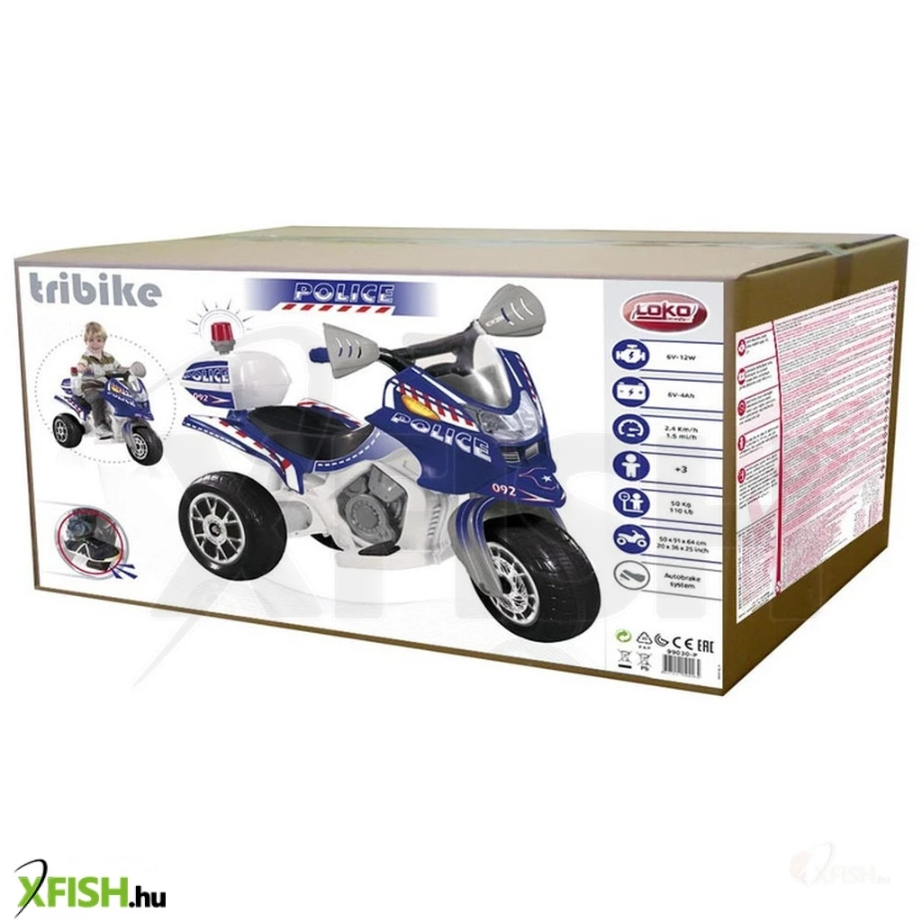 KategóriákKategóriákSportjáték, sportfelszerelés Szabadtéri sportjátékok Loko akkus 3 kerekű rendőrmotor