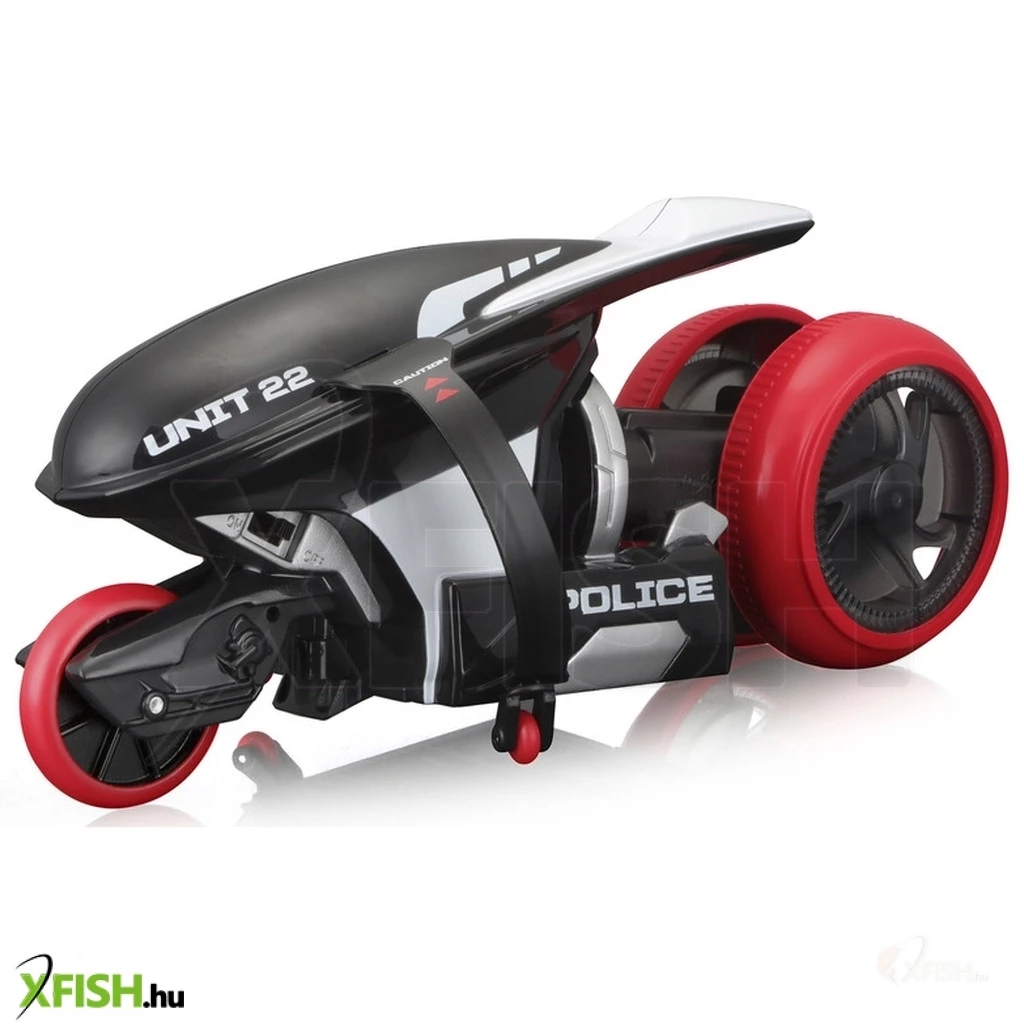 Ezzel aztán lehet versenyeket rendezni. Hátsó dupla kereke forgatható, így ha a nagy hajszában felborulna, nem kell kétségbe esni, mert pillanatok alatt visszanyeri az egyensúlyát és folytatódhat a száguldás. Távirányítója egy kézben fogható, így kényelmes irányítást tesz lehetővé.