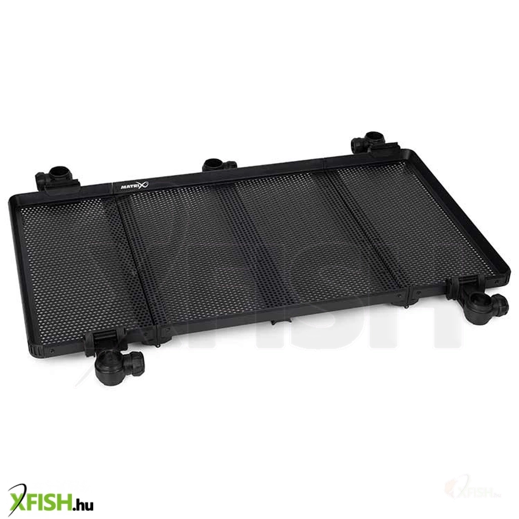 A Matrix összecsukható oldaltálca egy praktikus és helytakarékos megoldás, amely ideális csalizáshoz, etetőanyagok és horgászkiegészítők rendszerezett elhelyezéséhez. Összecsukható kialakítása révén könnyen szállítható és kis helyen tárolható, miközben kinyitva nagy felületet biztosít a kényelmes munkavégzéshez. Perforált felülete elősegíti a víz elvezetését és a szellőzést, így megóvja a csalit a felázástól. Kompatibilis 25 mm, 30 mm és 36 mm átmérőjű lábakkal, így széles körben használható különböző verseny- és feederhorgász ládákkal. Stabil, strapabíró szerkezetének köszönhetően megbízható kiegészítő minden horgász számára, aki rendezett és kényelmes munkaterületet szeretne a vízparton.