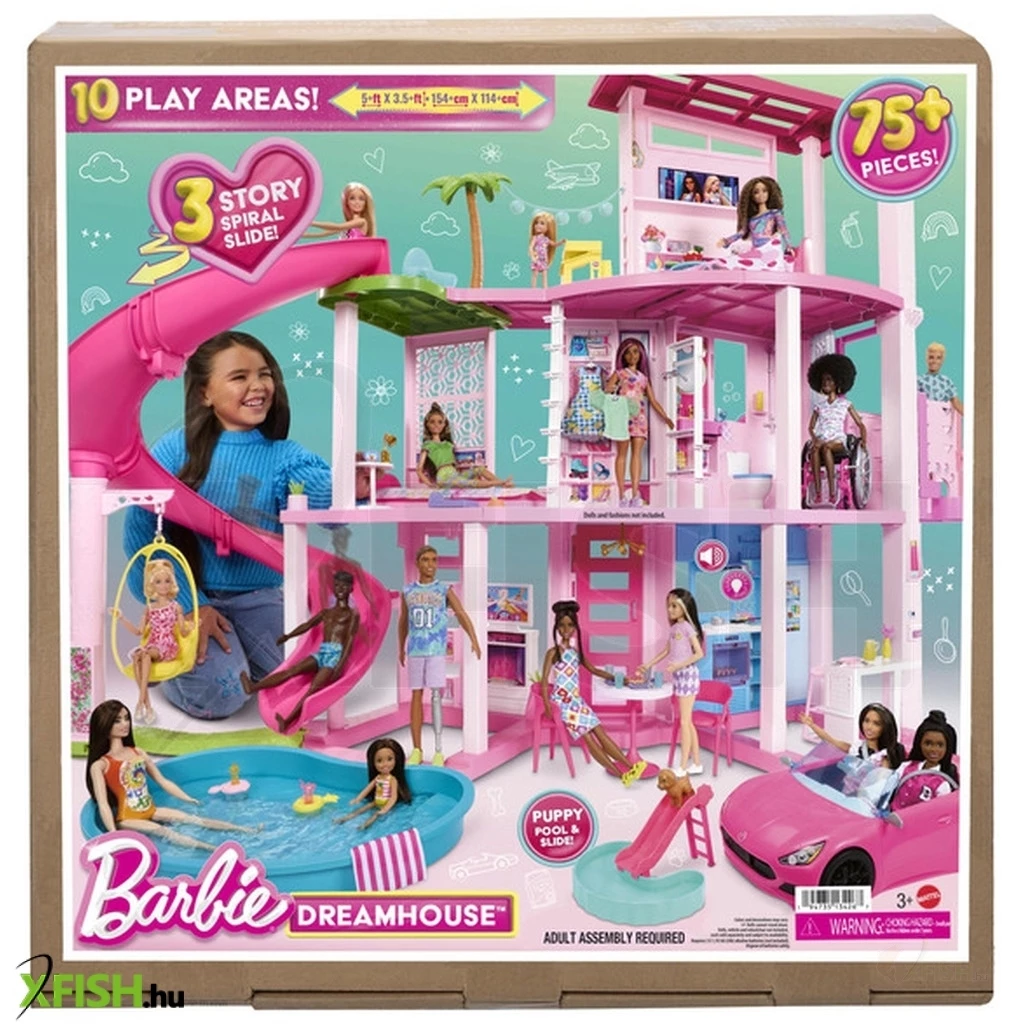 A Mattel Barbie Álomház egy ikonikus, nagyméretű és részletgazdag játék-babaotthon, amely minden Barbie-rajongó gyerek számára csodálatos játékvilágot teremt. Több szinten, valódi életszerű helyiségekkel – mint nappali, konyha, hálószoba és fürdőszoba – várja a kreatív berendezést és a szerepjátékot. A házhoz tartozó bútorok, dekorációk és kiegészítők lehetővé teszik, hogy a gyerekek saját történeteiket alkossák meg Barbie-val és barátaival, miközben fejlesztik a fantáziát, a finommotorikus készségeket és a problémamegoldó gondolkodást. Tökéletes ajándék minden kis lakberendező- és szerepjáték-rajongónak!