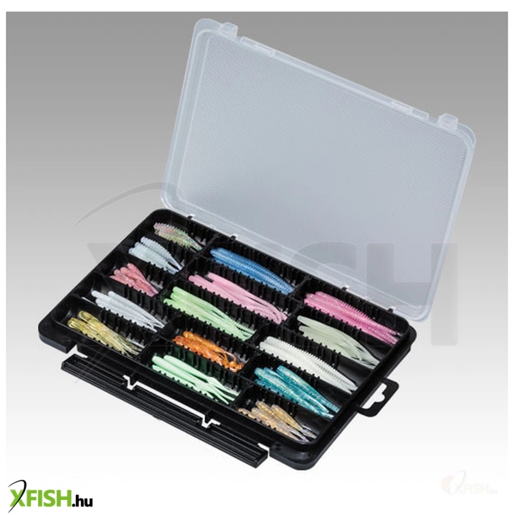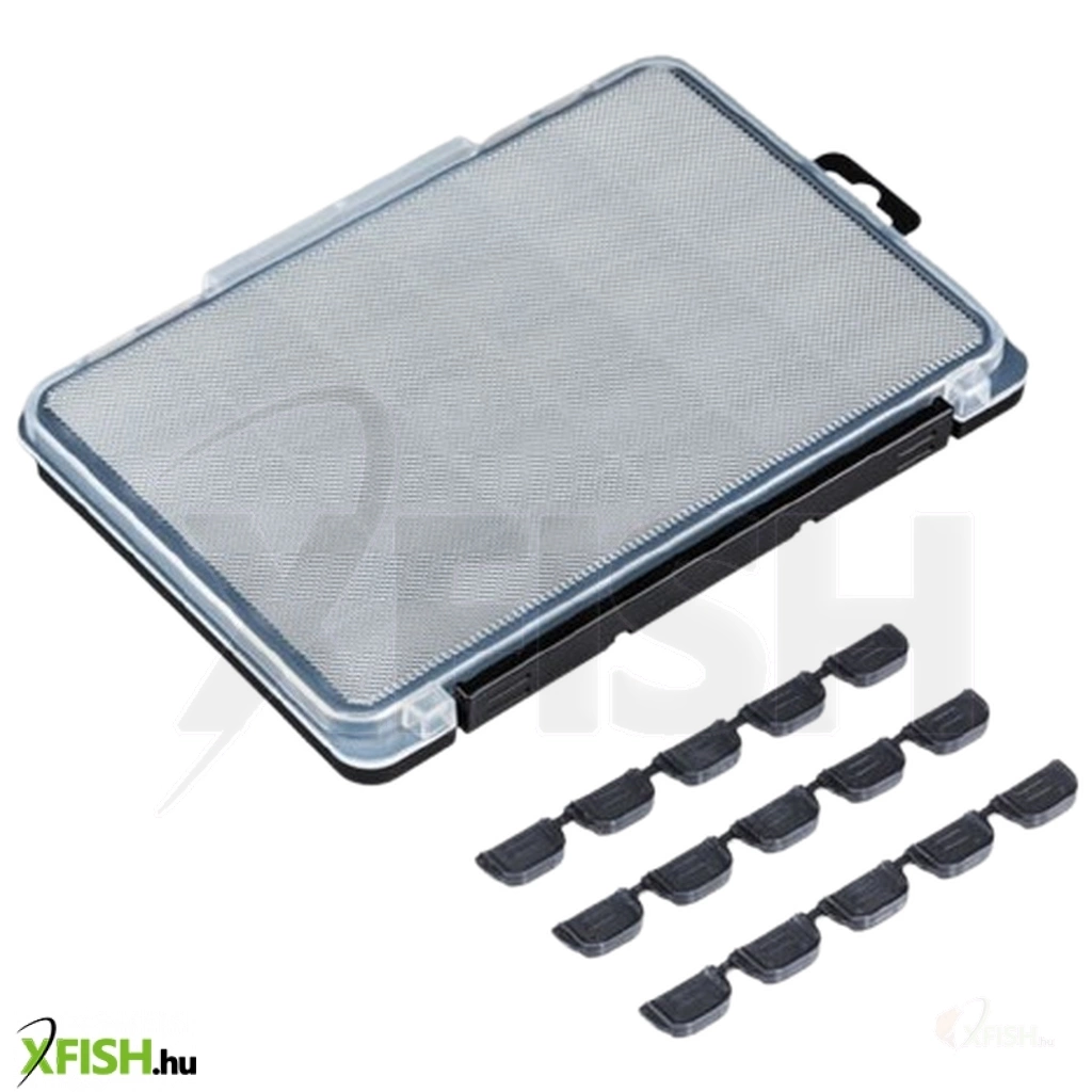 A doboz kiváló minőségű polipropilén anyagból készült, amely ellenáll a nedvességnek és a mechanikai behatásoknak, biztosítva ezzel a hosszú élettartamot és a megbízható használatot. Kompakt mérete és lapos kialakítása révén könnyedén elfér horgásztáskában vagy hátizsákban, így ideális választás mind hobbi-, mind versenyhorgászok számára. A biztonságos záródású fedél megakadályozza a csalik véletlen kiesését, míg a praktikus kialakítás megkönnyíti a használatot a horgászat során.
