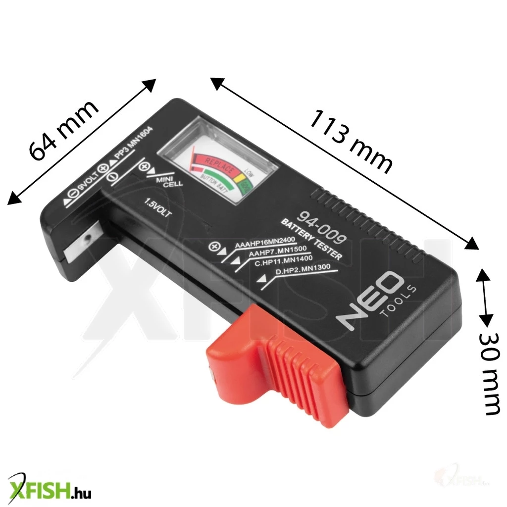 Neotools akkumulátor és elemteszter, 1,5-9v-ig