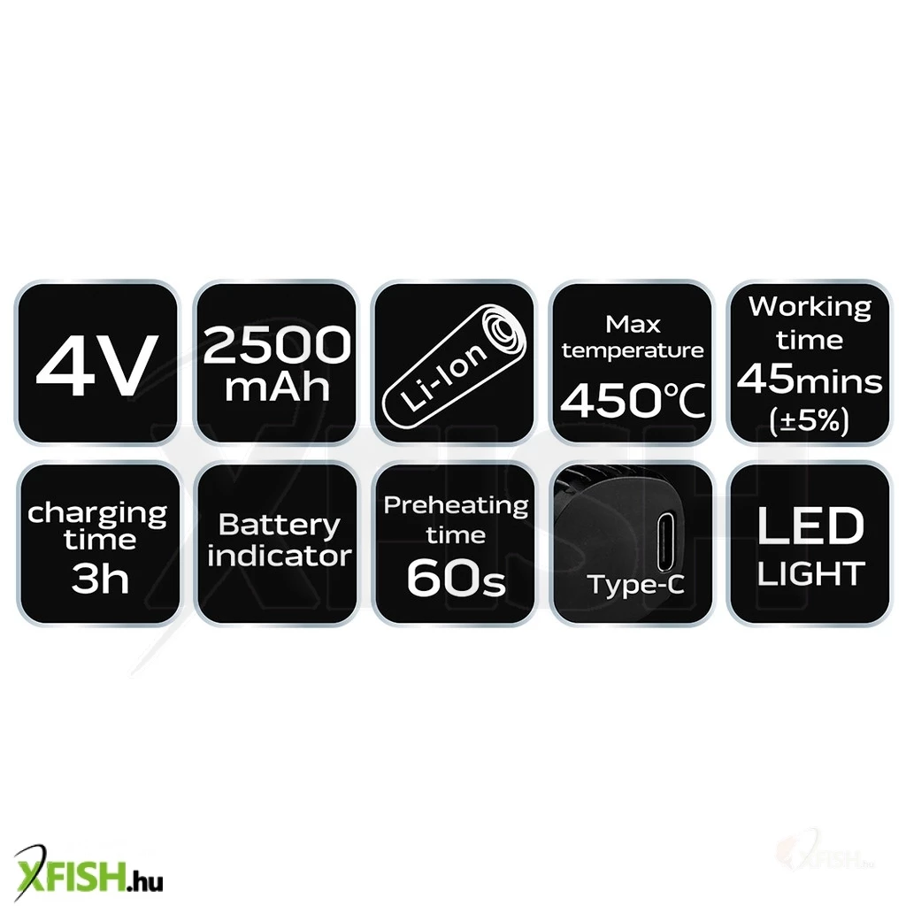 Az USB töltés praktikus megoldást kínál, mivel szinte bármely USB csatlakozóval rendelkező eszközzel tölthető, legyen szó számítógépről, power bankról vagy autós töltőről. Ez különösen hasznos, ha a műhelyen kívül kell dolgoznia, és gyors töltésre van szüksége útközben. A 4 voltos teljesítmény biztosítja, hogy a páka gyorsan felmelegedjen és hosszú ideig használható maradjon.