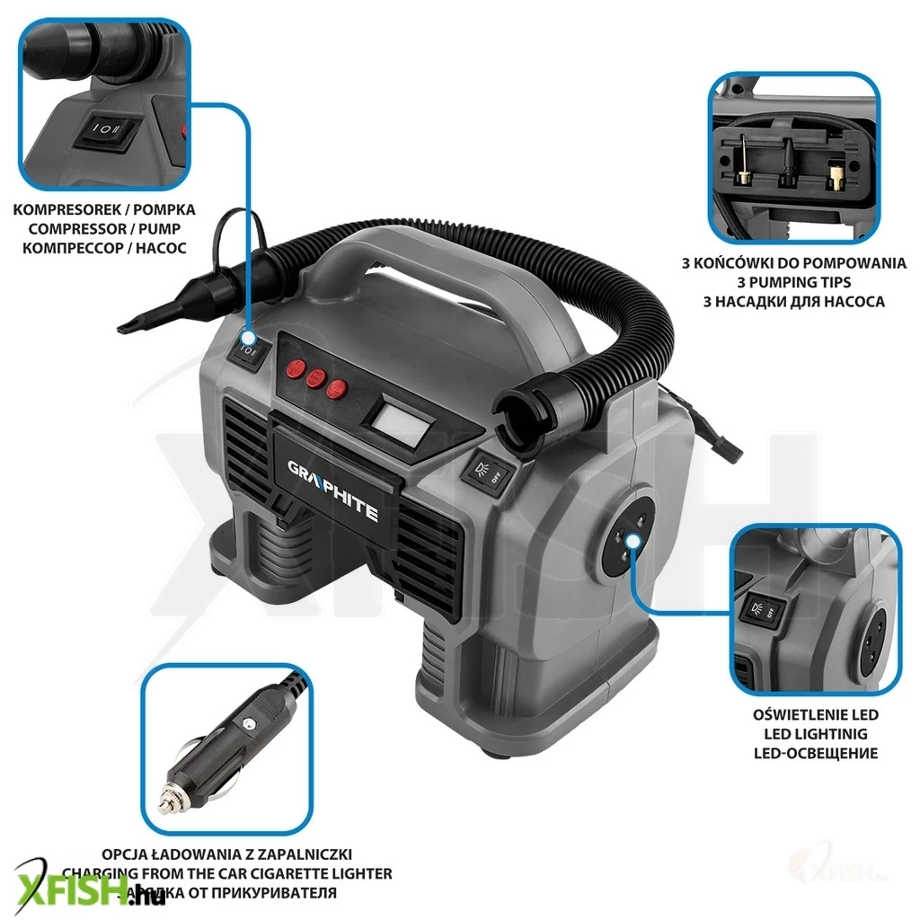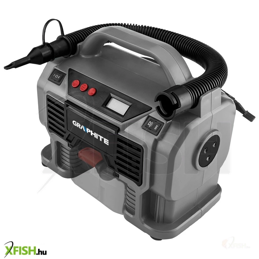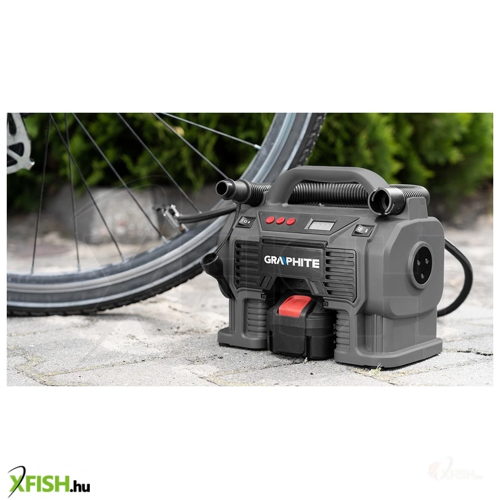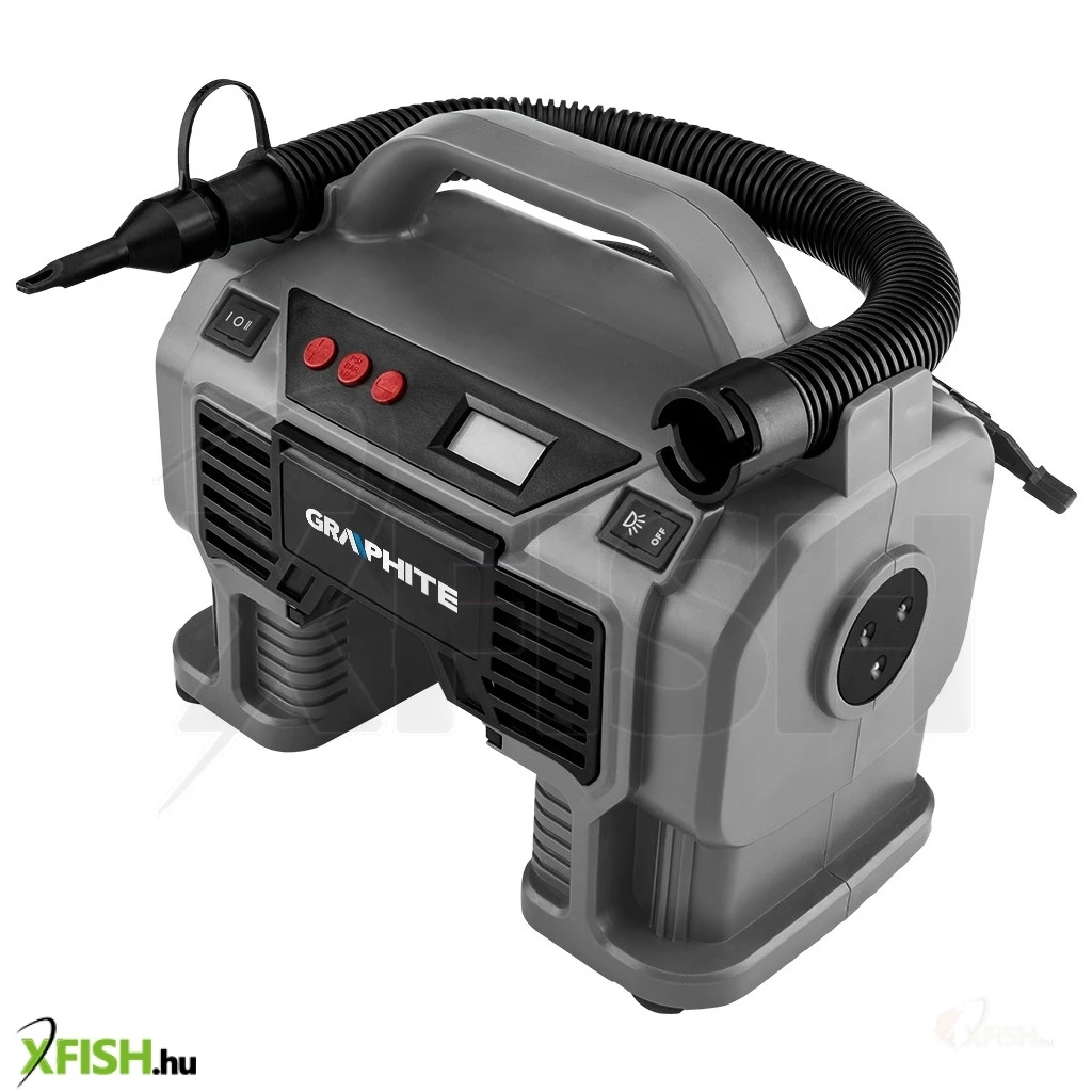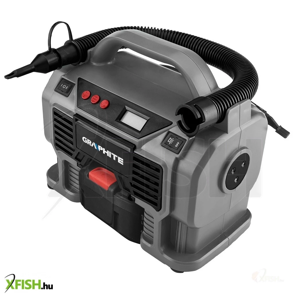 AzEnergy+ 18V kompresszor akkumulátor nélkül 58G113 GRAPHITE egy praktikus és többfeladatú kompresszor, amely a GRAPHITE modern Energy+ akkumulátorrendszere alapján működik. A készülék kompatibilis a 18 V-os lítium-ion akkumulátorokkal.