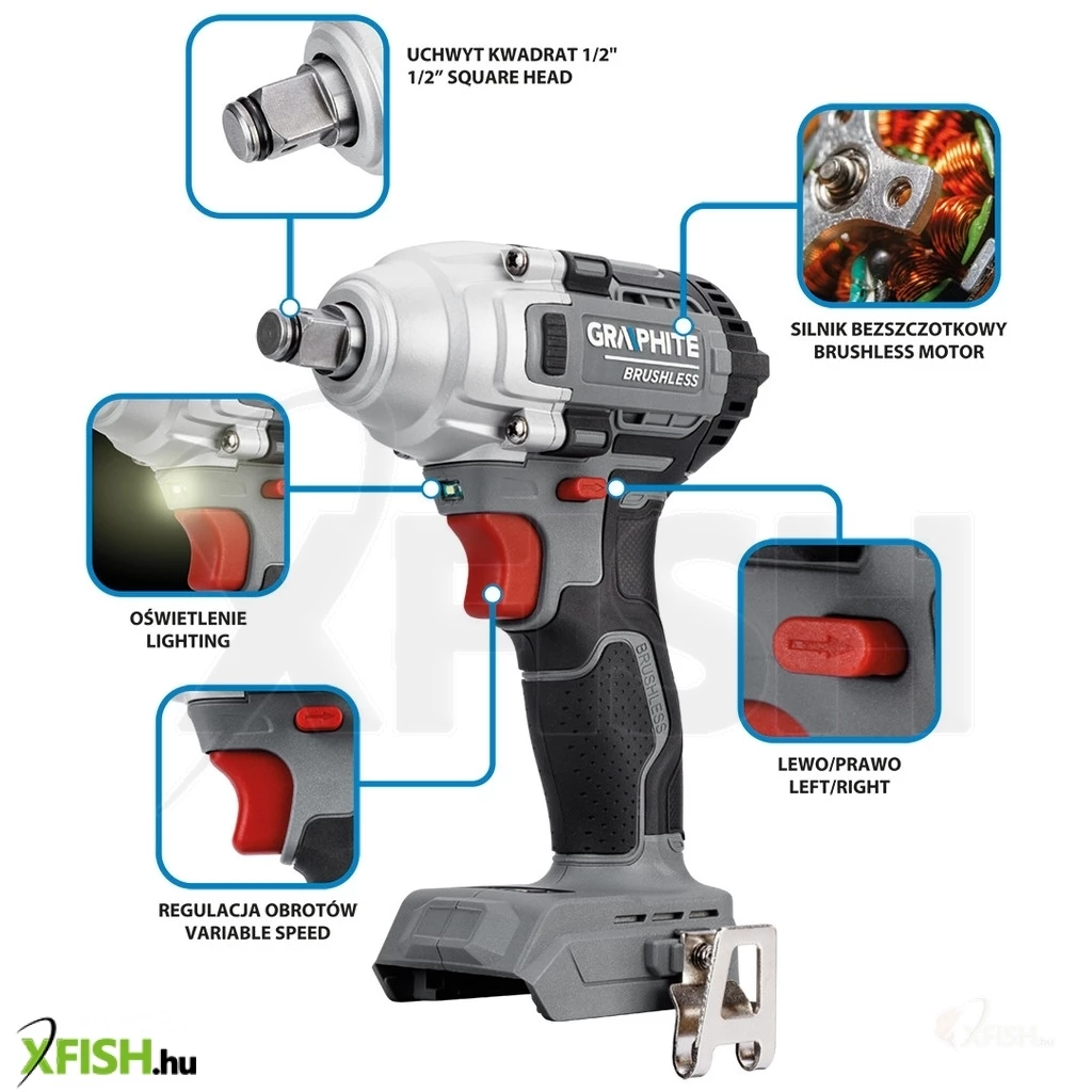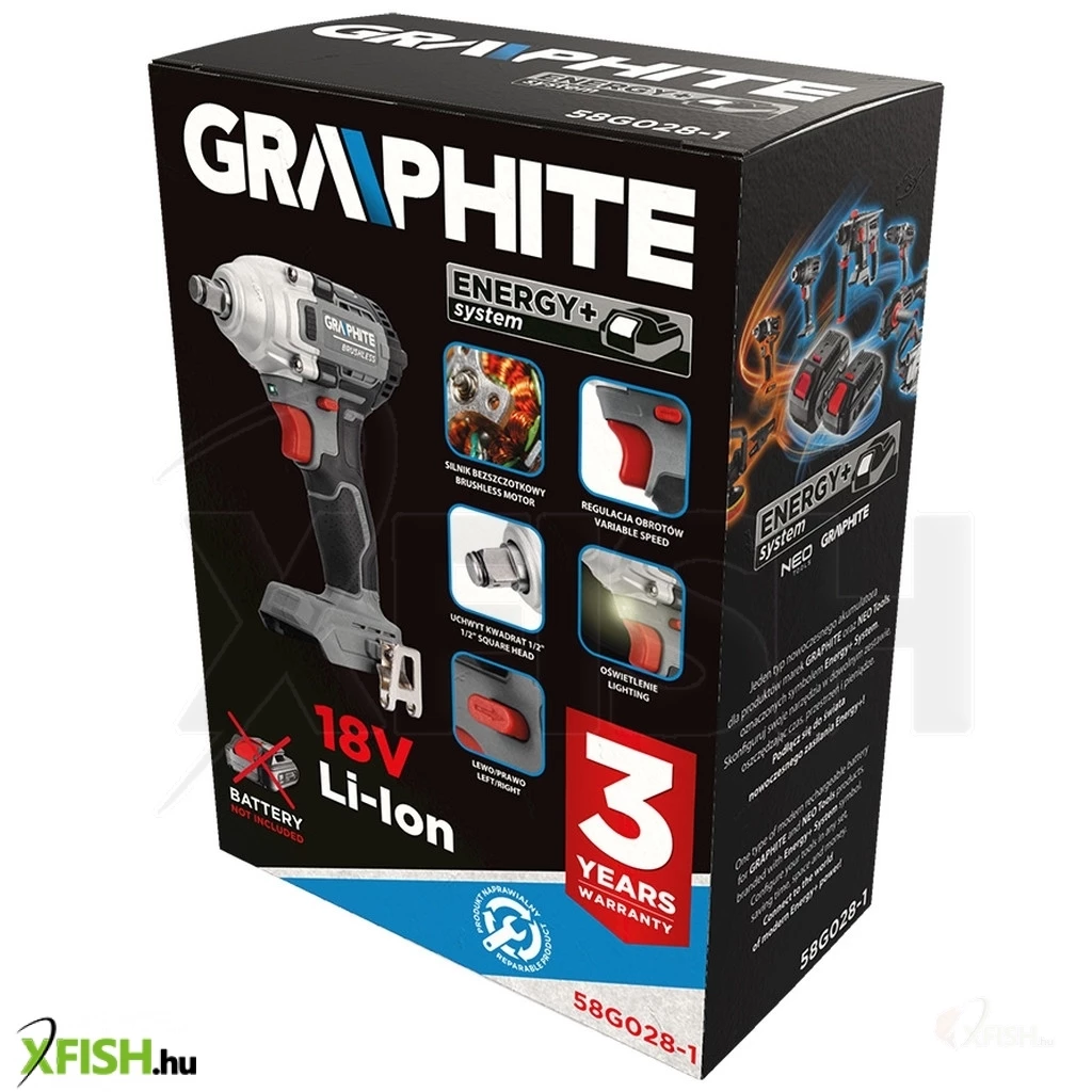 A GRAPHITE 58G028-1 Energy+ 330 Nm-es kefe nélküli akkumulátoros ütvecsavarozó 58G028-1 egy nagy teljesítményű szerszám, amely az Energy+akkumulátoros rendszerrel működik. A GRAPHITE márka 18 V-os lítium-ion akkumulátorával való használatra ajánlott. A robusztus, kefe nélküli motorral ellátott ütvecsavarozót elsősorban csavarok meghúzásával és eltávolításával járó műhelymunkákhoz ajánljuk.