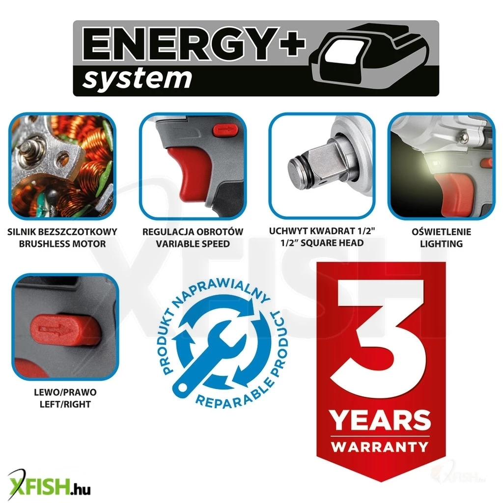 Kényelmes akkumulátorrendszer az újratölthető eszközökhöz. Speciális akkumulátorok a GRAPHITE elektromos szerszámokhoz, széles kapacitásválasztékban kínálva. Az Energy+ rendszer lehetővé teszi, hogy több eszközt is kényelmesen használhasson, anélkül, hogy aggódnia kellene a kábelek hurcolása vagy a helyi áramforrások keresése miatt. Az ütvecsavarkulcsot akkumulátor nélkül tartalmazza.