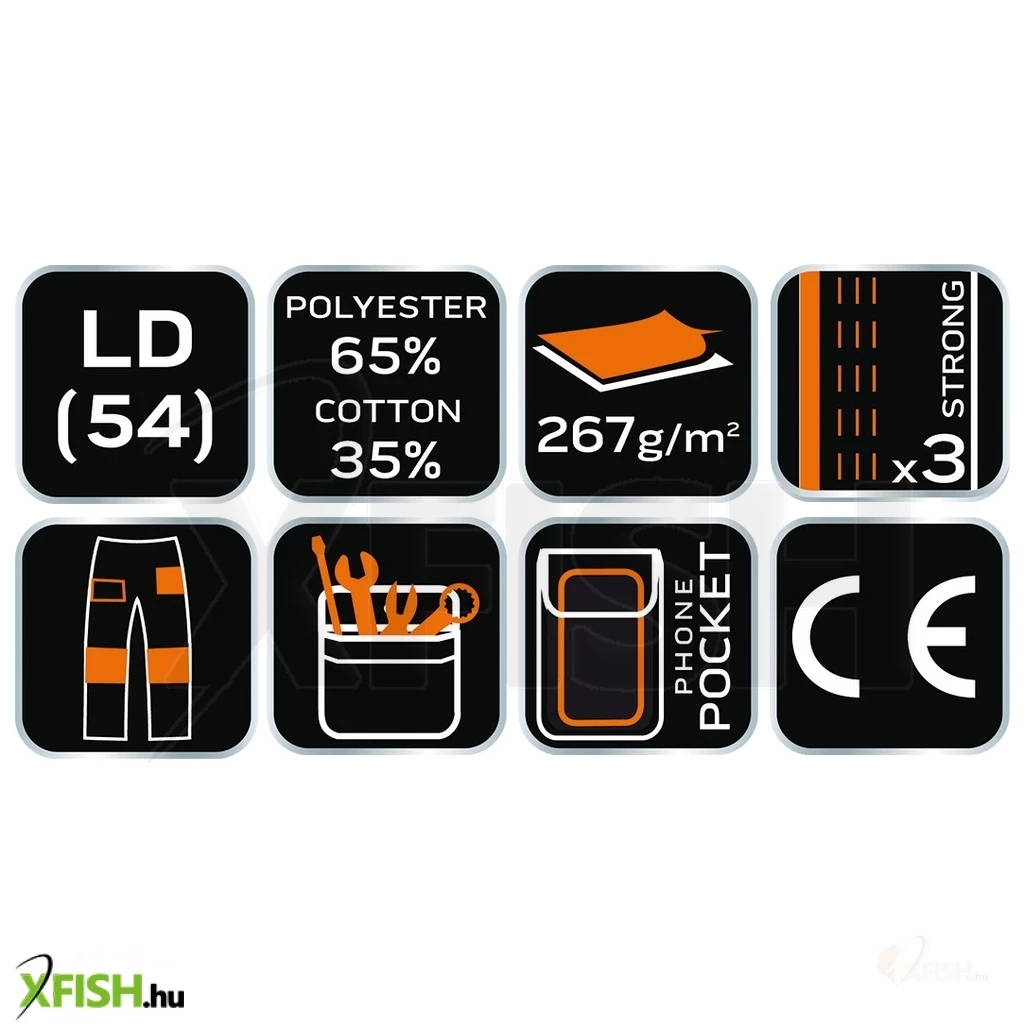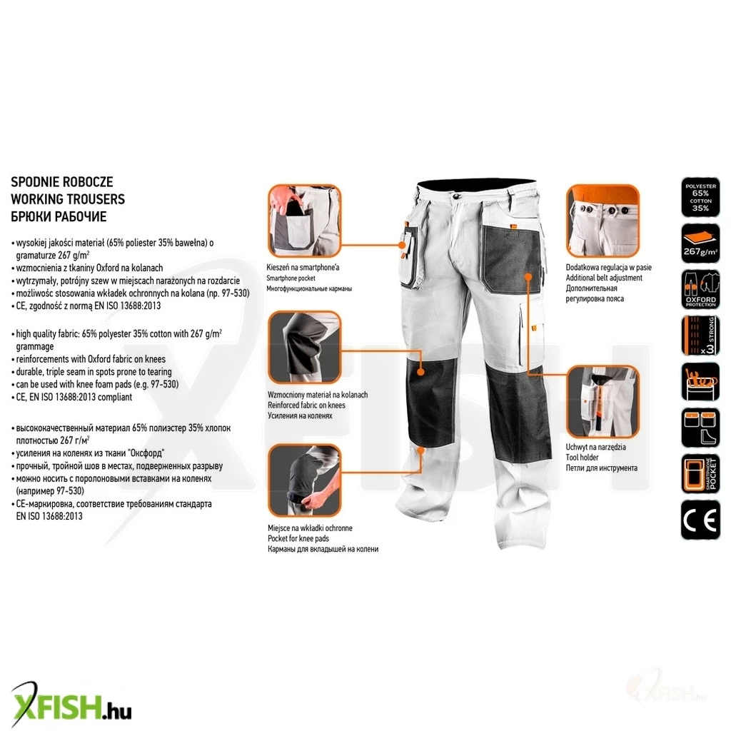 A Neotools fehér munkásnadrág kiváló választás mindazok számára, akik tartós és kényelmes munkaruházatra vágynak. A nadrág 35% pamut és 65% poliészter összetételének köszönhetően kitűnő viselési élményt biztosít a hosszú munkanapokon. A 267 g/m²-es szövet sűrűsége kiváló egyensúlyt teremt a tartósság és a kényelem között, így ideális kültéri és beltéri munkavégzéshez egyaránt.