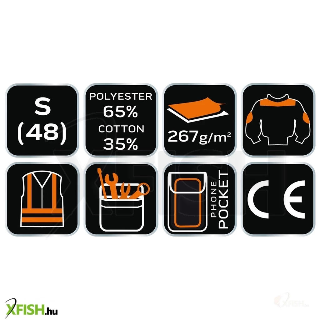 A Neotools munkavédelmi kabát praktikus kialakítása magában foglalja az erősített zsebeket, melyek ideálisak a szükséges eszközök és kiegészítők tárolására. Az intelligens zsebtervezés hozzáférhetővé teszi a gyakran használt tárgyakat, megkönnyítve ezzel a horgászok életét. A háton elhelyezett fényvisszaverő elemek pedig elengedhetetlenek, hogy biztosítsák a láthatóságot akár nappali fényben, akár esti órákban, így növelve az ön biztonságát.