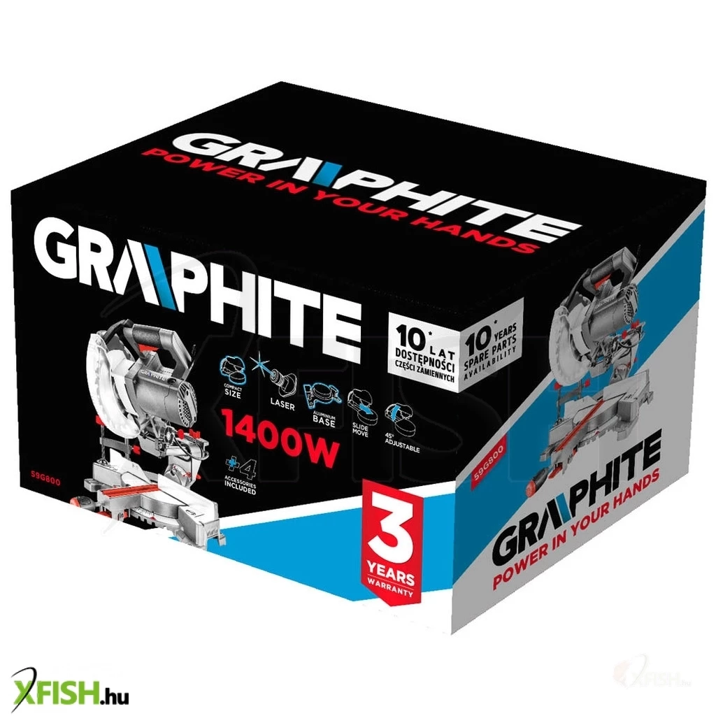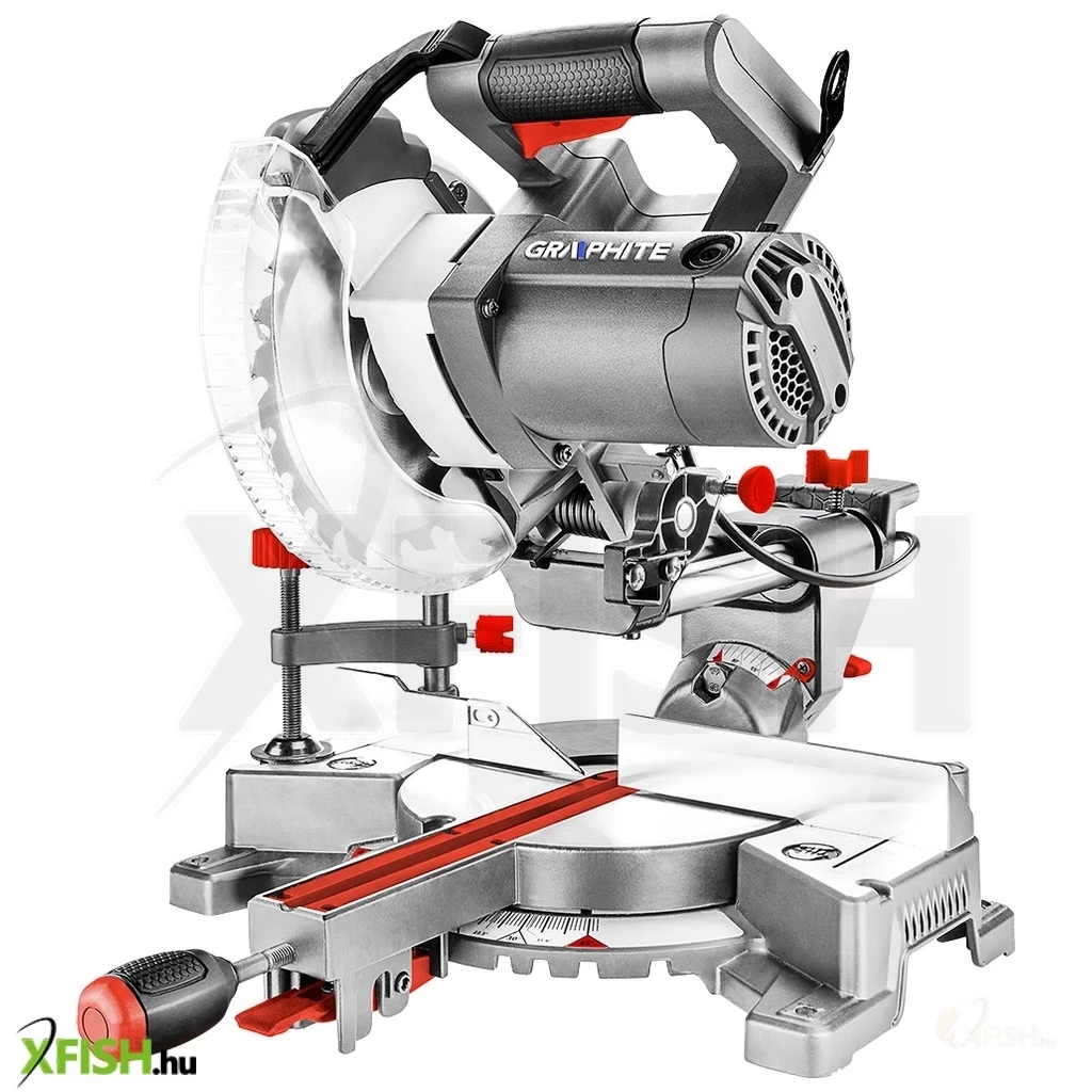 Gérvágó 1400 W, 185 x 16 mm korong, fordulatszáma 5000 minOO, gérvágás terjedelme ±45O, ferdevágás terjedelme 0-45O, maximális vágott anyag vastagság 0O/0O 65 x 260 mm, 45O/0O 65 x 180 mm, 45O/45O 35 - 170 mm, lézer