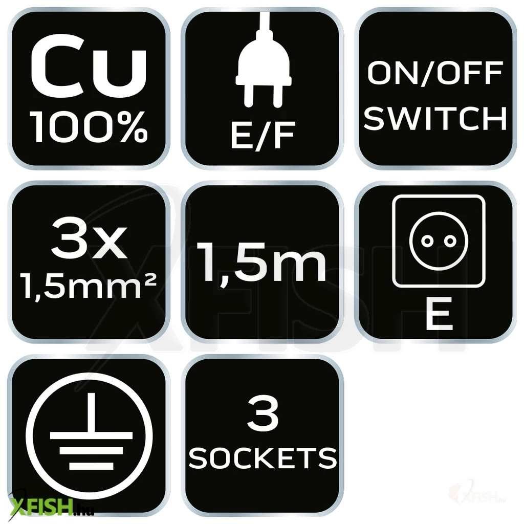 A hálózati elosztó 1,5 méter hosszú, 3x1,5mm2 keresztmetszetű kábellel van felszerelve, amely biztosítja a megbízható teljesítményt és a rugalmasságot, hogy minden igényét kielégítse. Ez a hosszúság elegendő ahhoz, hogy a legeldugottabb helyeken is kényelmesen használhassa anélkül, hogy a kábelek kuszaságától kellene tartania. A masszív konstrukció és a kiváló minőségű anyagok biztosítják az elosztó tartósságát, így hosszú távon is hűséges társra talál benne.