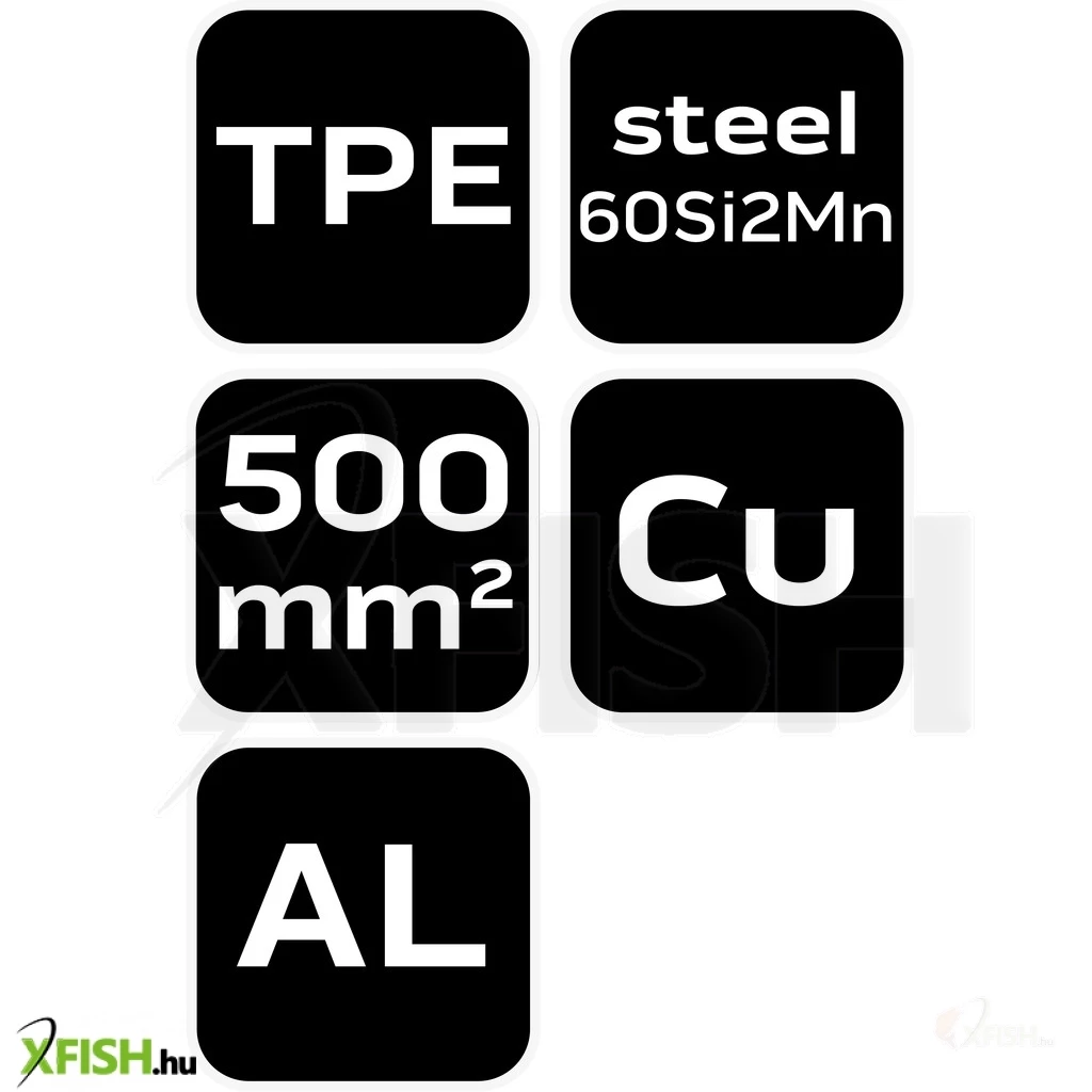 A Neotools kábelvágó egy rendkívül hatékony eszköz, amelyet speciálisan a réz és alumínium kábelek precíz és könnyű vágásához terveztek. A 400 mm²-es keresztmetszetű kábelek vágására alkalmas termék ideális választás szerelési és telepítési munkálatokhoz, ahol a megbízhatóság és a teljesítmény kiemelten fontos. A racsniszerkezet révén a kábelvágó különlegesen egyszerű használatot tesz lehetővé, hiszen a mozgó pofa bármely munkafázisban visszaengedhető. Így minimalizálja a szükséges erőkifejtést, és biztosítja a biztonságos és kényelmes munkavégzést.