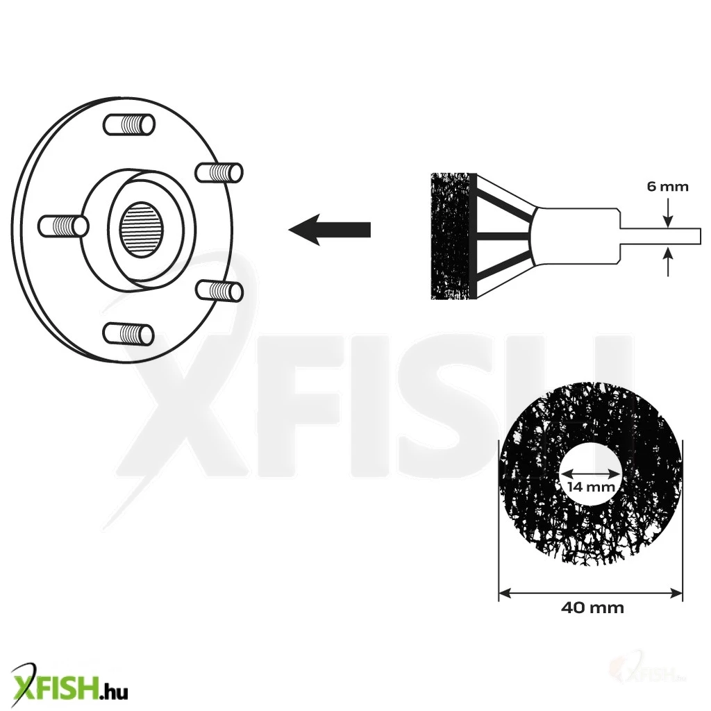 A készlet hat darab, cserélhető, 40 x 14 mm-es dörzstárcsát és egy rögzítőszárat tartalmaz, amely 6 x 29 mm-es. Ezek az elemek lehetővé teszik a munkavégzést még a nehezen hozzáférhető helyeken is, különösen a csapos kerékagyak körüli részeknél, ahol a szennyeződés gyakran megtelepszik. A dörzstárcsa könnyen és gyorsan használható, így időt és energiát takarít meg a felhasználó számára.