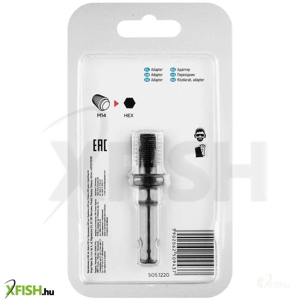 M14/hatlapú átalakító adapter, 55H320, GRAPHITE - gyémántos körkivágókhoz tervezték. Lehetővé teszi az M14 menetes körkivágók rögzítését a befogóorsókban.