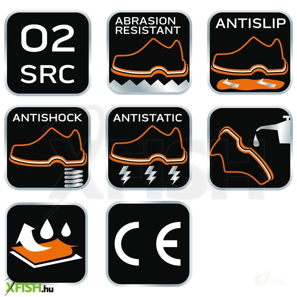 A termék tökéletes választás azok számára, akiknek fontos a szabványoknak való megfelelés: a cipő rendelkezik a CE tanúsítvánnyal, és megfelel az EN ISO 20347:2012 SRC FO O2 szabványú követelményeknek, biztosítva ezzel a csúszás elleni védelmet különböző környezetekben, mint például a kerámiás talajon lauril-nátrium-szulfát eleggyel vagy glicerollal bevont acél talajon.