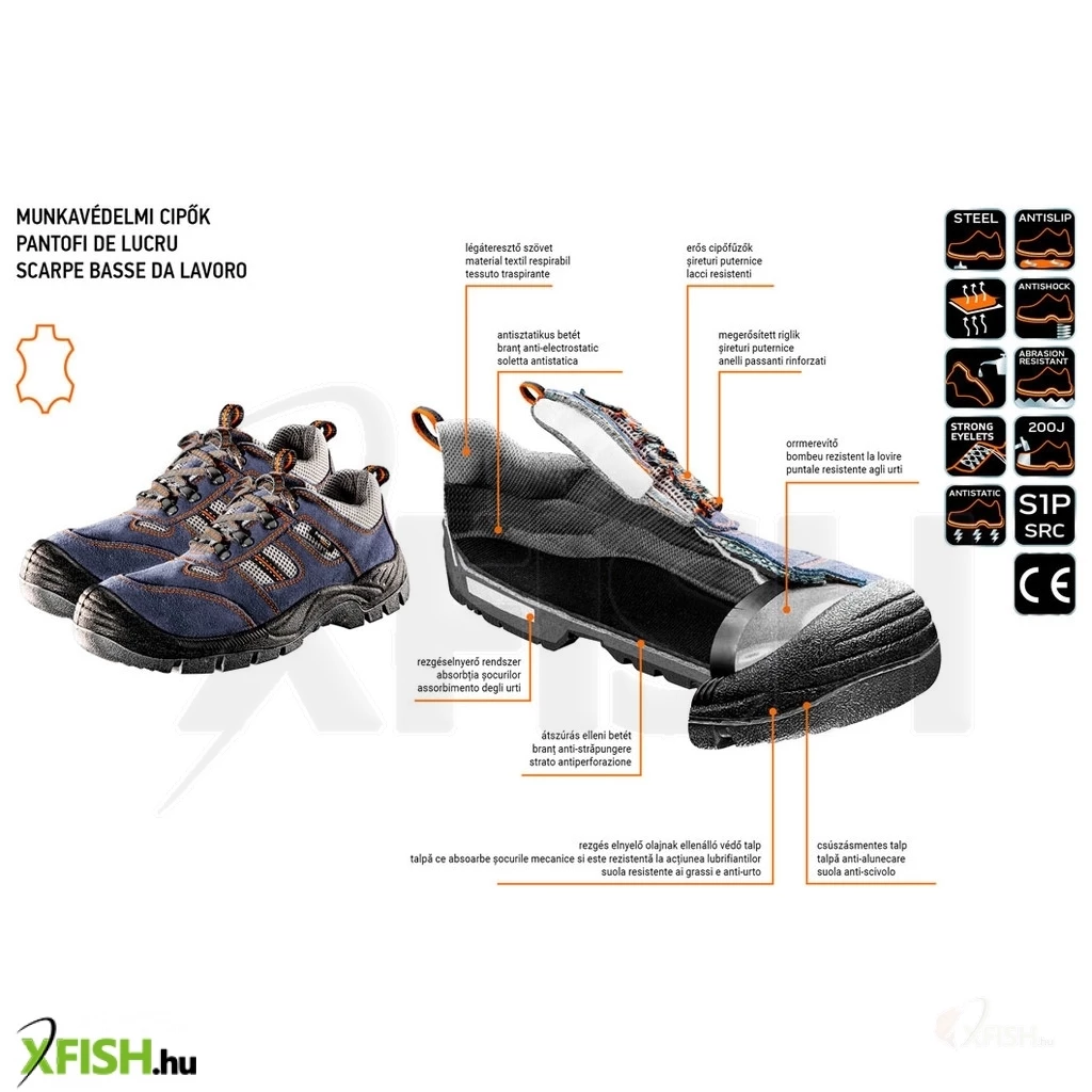 A Neotools munkavédelmi cipő ideális választás horgászok számára, akiknek fontos a kényelem és a biztonság a természetben töltött órák alatt. Ez a félcipő kifejezetten munkavédelmi célokra lett tervezve, de sokoldalúsága miatt a horgász bakancs kategóriában is kiválóan megállja a helyét. A cipő felsőrésze tartós és lélegző velúrbőrből készült, ami biztosítja a megfelelő szellőzést és kényelmet hosszabb viselés során is.