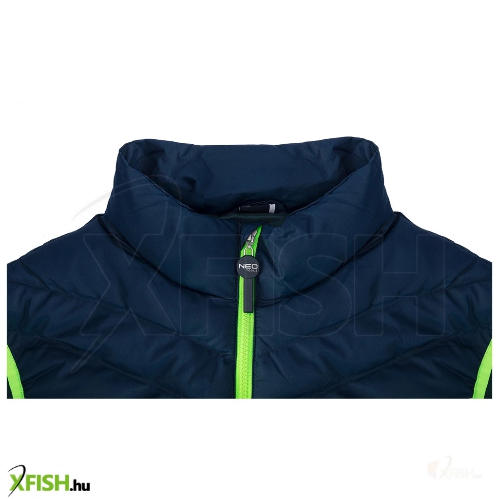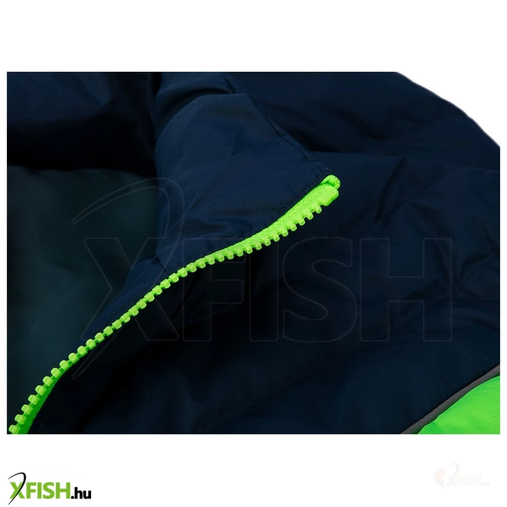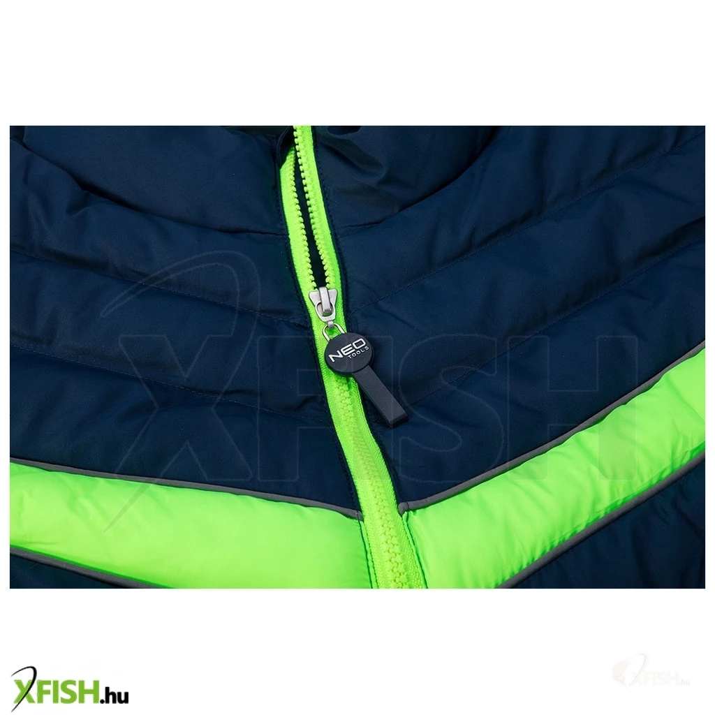 Jellemzők: XL-es méret, prémium kategória, kétirányú steppelés, sötétkék neonzöld betéttel, vízálló YKK cipzár, fényvisszaverő elemek, belső névcímke, CE tanúsítvány.
