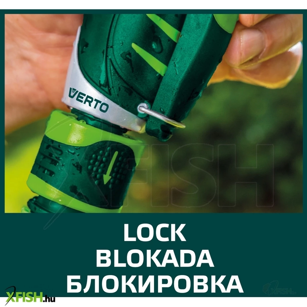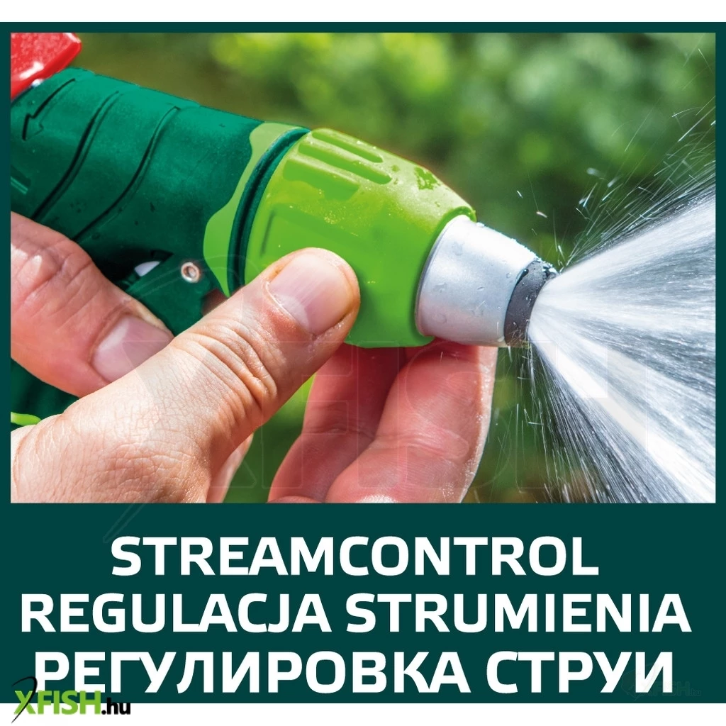 Szabályozós öntöző pisztoly, különböző erősségű áramlás, első reteszelő kar, dupla anyagú fogantyú