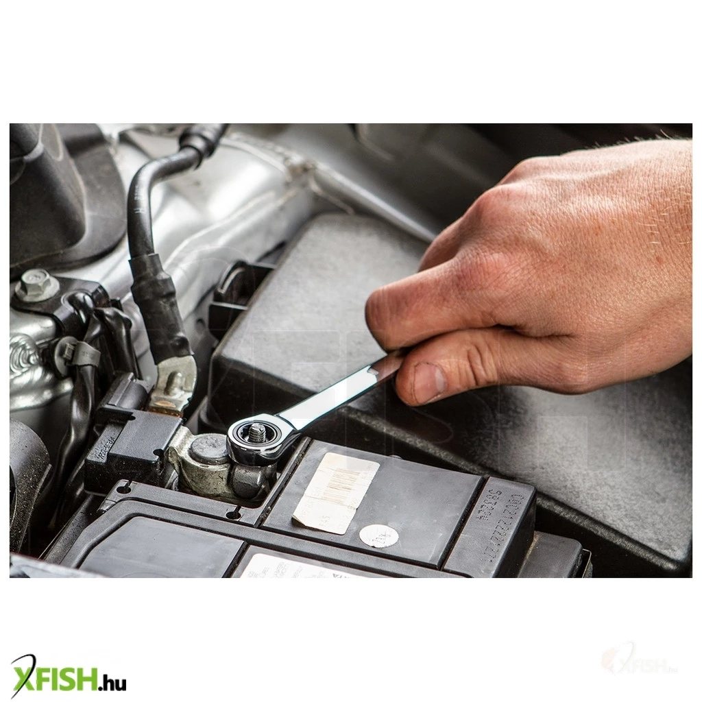 A Neotools racsnis csillag-villáskulcs 13mm egy kiváló minőségű kézi szerszám, amely ideális választás mind az amatőr barkácsolók, mind a hivatásos szerelők számára. Ez a kulcs a kategóriájában kiemelkedő teljesítményt nyújt, köszönhetően a robusztus CrV acél anyagának, amely hosszan tartó élettartamot és kiváló strapabíróságot biztosít. A racsnis mechanizmus lehetővé teszi a gyors és hatékony munkavégzést, mivel folyamatos csavarzást tesz lehetővé anélkül, hogy folyamatosan le kellene venni a csavarról a kulcsot. Ez az innovatív funkció különösen hasznos szűk vagy nehezen hozzáférhető helyeken végzett munkálatok során, ahol minden megspórolt másodperc számít. A kulcs csillag-villás kialakítása sokoldalú felhasználást tesz lehetővé, hiszen mindkét végével más-más típusú csavarokhoz illeszkedik. Az ergonómikus kialakítású szerszám kényelmes fogást biztosít még hosszabb munkavégzés során is, így csökkenti a kéz fáradását. Az eszköz kompakt mérete miatt könnyen tárolható és szállítható, így mindig kéznél lehet a szerszámosládában vagy a munkaállomáson. A Neotools racsnis csillag-villáskulcs a horgászatban is hasznos lehet, hiszen például a horgászcsónak motorjának vagy egyéb szerszámok csavarjainak szerelésében is hatékonyan alkalmazható. Ez egy igazi must-have darab minden olyan szerszámkészletben, ahol a minőség és a megbízhatóság az elsődleges szempont.