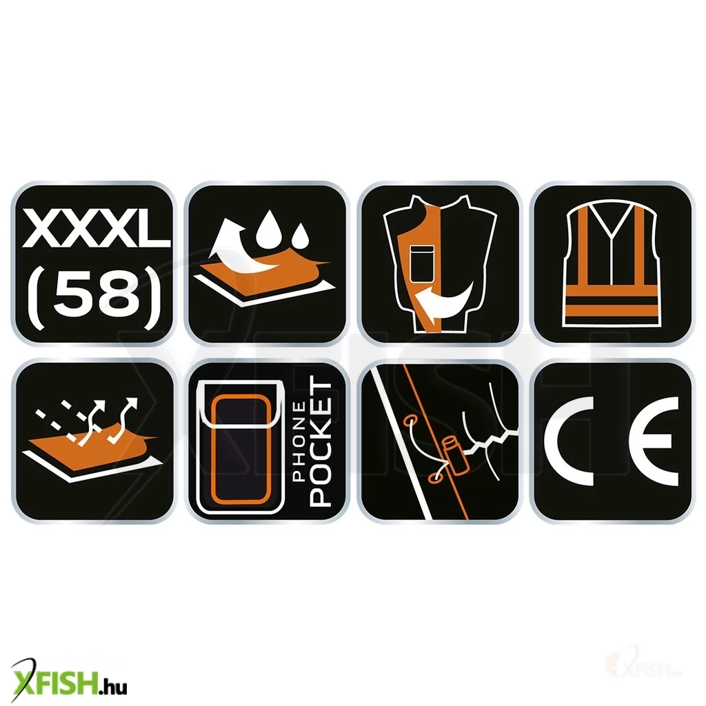 A mellény XXXL méretben készül, így a maximális kényelmet nyújtja még a vastagabb ruhadarabok felett viselve is. Az összehúzó fűzővel a derék részen tetszés szerint állíthatja a mellény bőségét, így mindig az adott szituációnak megfelelően szabályozhatja annak illeszkedését. Ez a tulajdonság különösen hasznos a szeles napokon, amikor fokozott szigetelésre van szükség.
