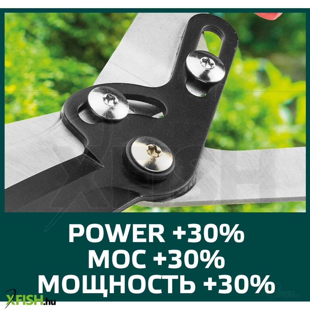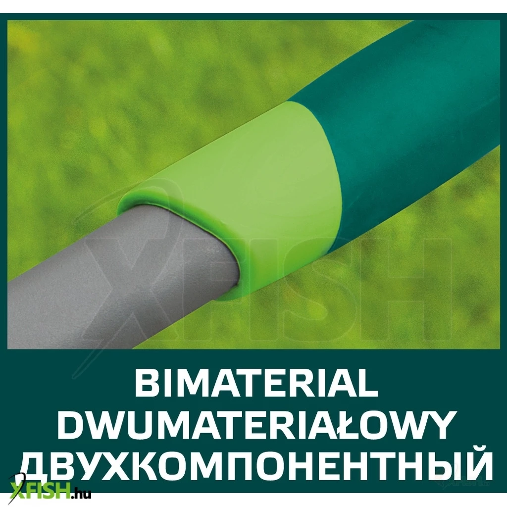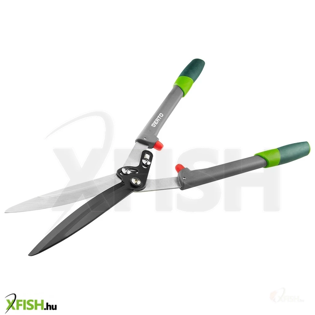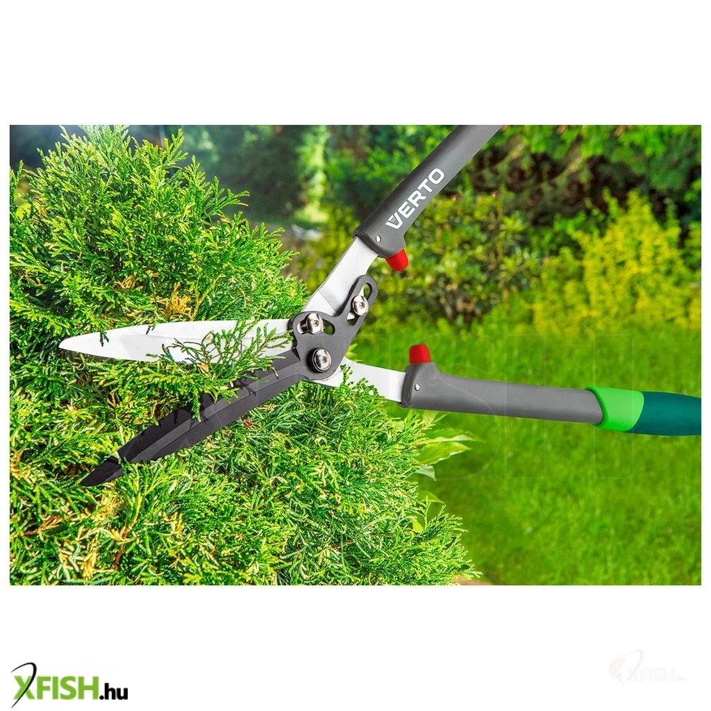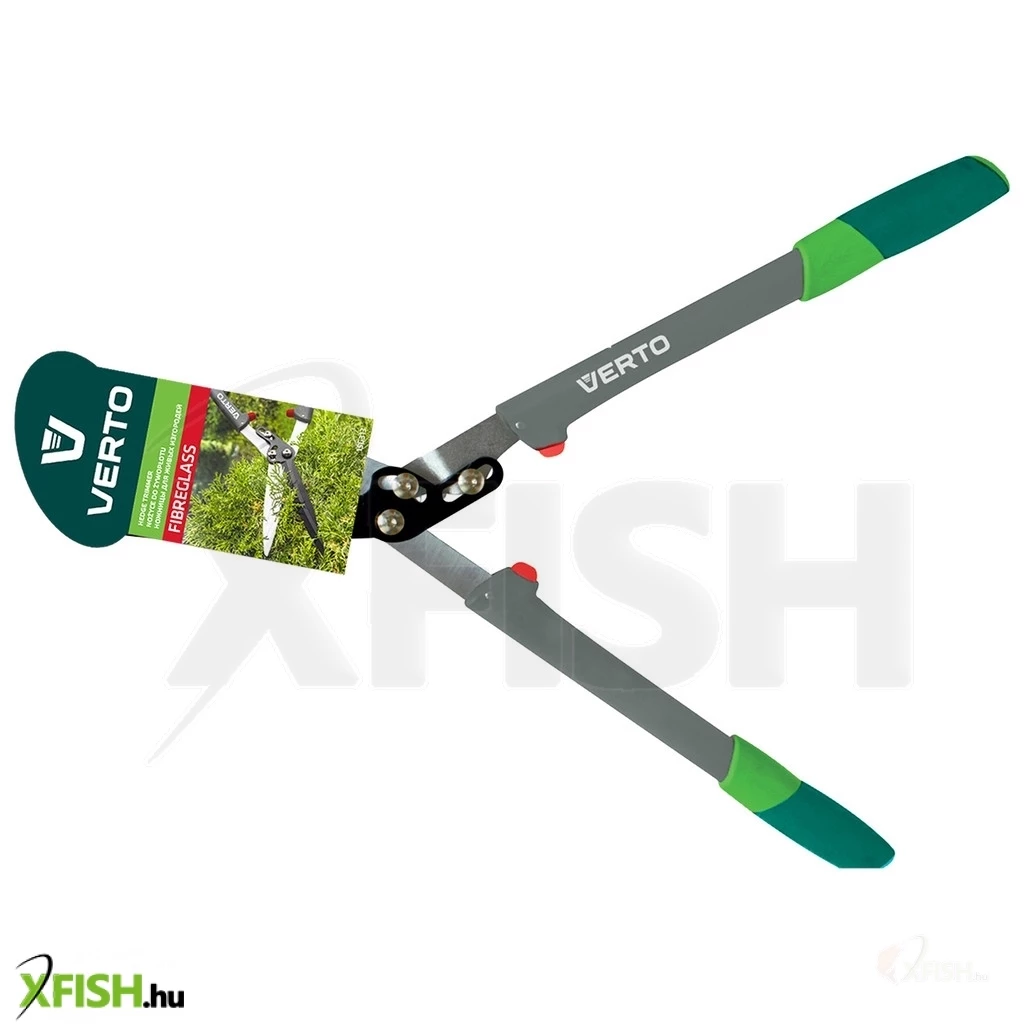 Sövényvágó olló, könnyű üvegszál nyél, PTFE bevonatú él, vágási erőt 30%-kal növelő kar, ütközők, csúszásgátló, ergonomikus markolat