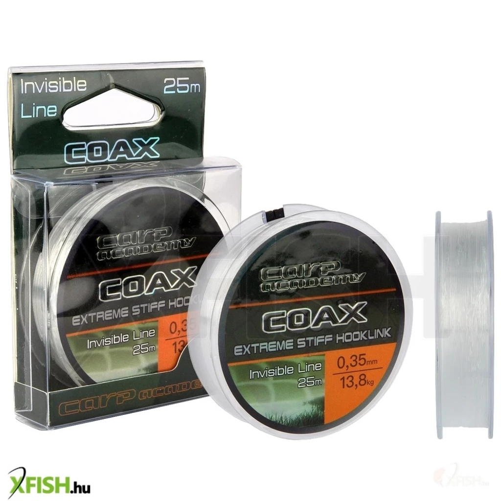 A Coax monofil előkezsinór az igazi nagyhal horgászok számára készült. 25 méteres kiszerelésben kapható ez a brutál erős zsinór. Rendkívüli csomótűrő képessége és kopásállósága teszi igazán alkalmassá a Coax-ot a ponty, és az amur matuzsálemekkel való viaskodásra. A zsinór extra merev, így dobós horgászatokhoz is ajánlott, mivel kevésbé tekeredik, gubancolódik. Színe víztiszta, így a halak számára szinte láthatatlan.