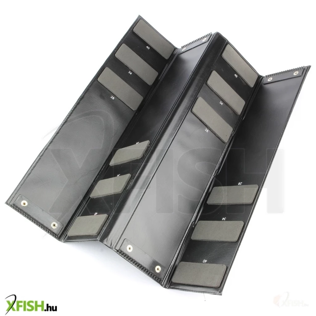 Hosszú feederes előkék biztonságos tárolását és rendszerezését tudjuk egyszerűen megoldani ebben a tartóban. A puha szivacs nem sérti meg a horog élét.