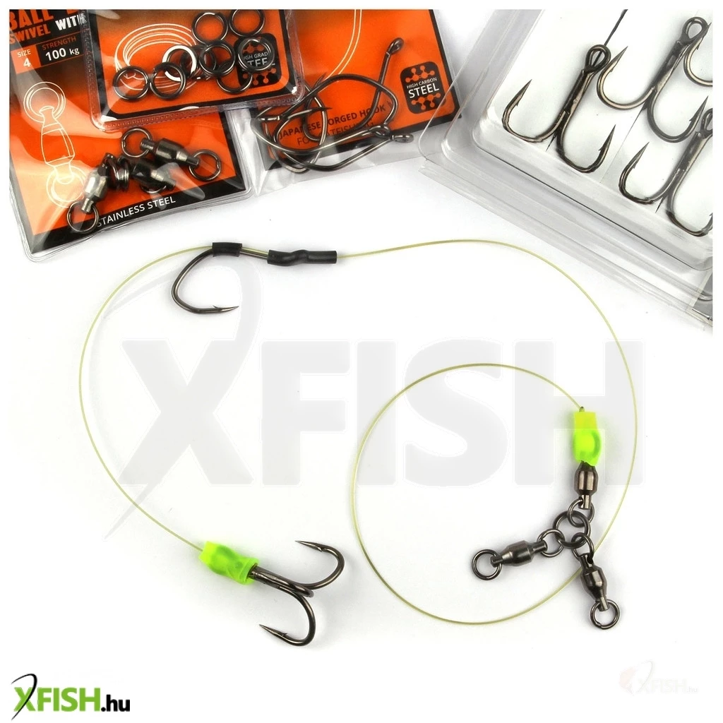 A kulcskarika anyaga kiváló minőségű, erős acél, amely garantálja a tartósságot és a rozsdásodás elleni ellenállást. A speciális kialakítású acél képes elviselni a harcsák által kifejtett jelentős fizikai erőhatásokat, megelőzve ezzel a szerelék meghibásodását a legkritikusabb pillanatokban.