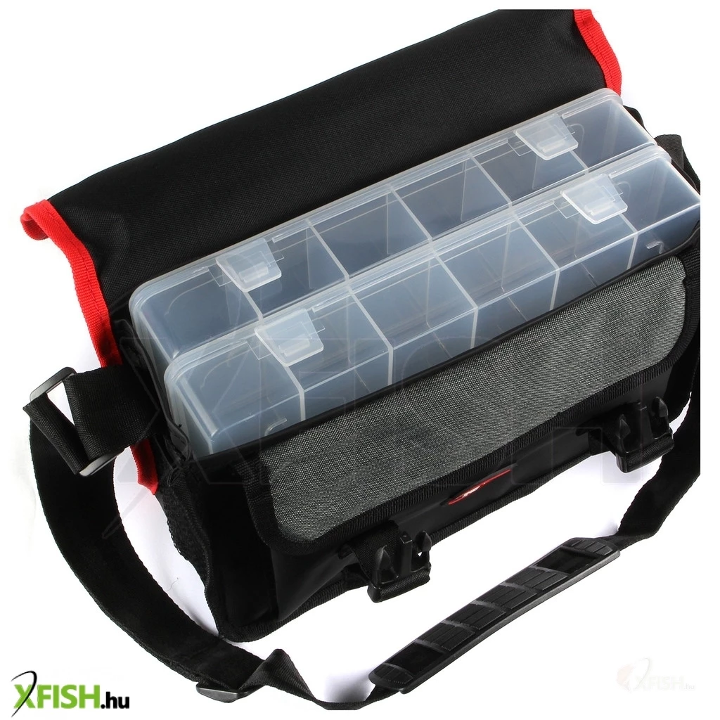 Belső terében a 28x11x18 cm méretű kialakítás lehetővé teszi a különféle pergető eszközök könnyed elhelyezését. A táska tartozéka a két beépített műanyag doboz, amelyek segítségével a csalik és egyéb kiegészítők rendezettek és áttekinthetőek maradnak, így mindig gyorsan megtalálhatóvá válnak a szükséges eszközök a horgászat során.