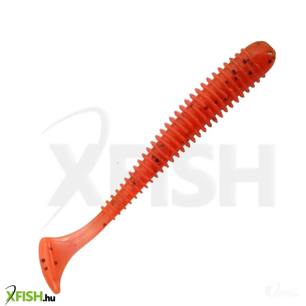 A bordás teskialakításnak köszönhetően nem csak a farok ad le rezgéseket,hanem a test is.Off-set horoggal szerelve a vízinövényes helyen is eredményesen használható.A lágy gumikeveréknek köszönhetően egyedi mozgása van,amellyel a tesztelések során rengeteg süllőt és sügeret adott.Csalogató anyagot tartalmaz.-8,75cm-5db/csomag-piros szín