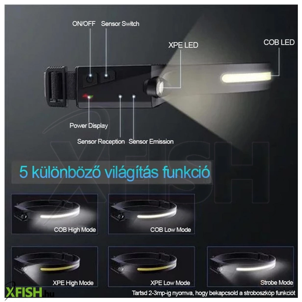 Ez a LED fejlámpa ideális választás bármilyen szabadtéri tevékenységekhez, legyen az éjszakai horgászat, túrázás, kempingezés, kerékpározás, futás, vagy hegymászás. Beépített 800mA akkumulátorral és USB-töltési lehetőséggel rendelkezik. A kényelmes használatot mozgásérzékelős kapcsolással biztosítja mindkét fényforrás esetén. A fő ledszalagos fényforrás 350 lumen fényerejű erős megvilágítást nyújt 230 fokban, az oldalsó kisebb területre fókuszált led lámpa 300 lumen fényerejű. A rugalmas fejpánt és a hosszú üzemidő pedig garantálja a kényelmet és a megbízhatóságot minden körülmény között.