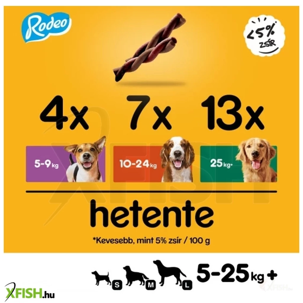 Etetési útmutató: Kistestű kutyáknak (pl. tacskó) max. 3 darab hetente. Közepes testű kutyáknak (pl. spániel) max. 6 darab hetente. Nagytestű kutyáknak (pl. labrador) max. 12 darab hetente. A napi etetési mennyiség kialakításakor kérjük vegye figyelembe a jutalomfalat mennyiségét is. Kiegészítő állateledel 5 kg feletti és 4 hónaposnál idősebb kölyökkutyák számára. Ne feledkezzen meg friss ivóvizet biztosítani kedvence számára.