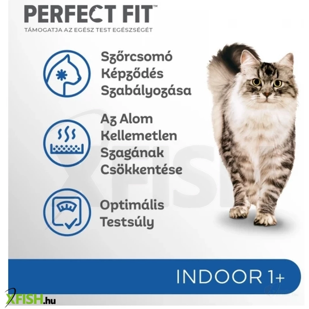 5. Egészséges testsúlykontroll: A Perfect fit 1+ felnőtt macska táphoz képest 20%-kal csökkentett napi kalóriabevitelt és 15%-kal kevesebb zsírt tartalmaz. Alom szagszabályozás: Yucca schidigera összetétele segít csökkenteni az alom szagát. Szőrgolyó képződés szabályozása: Élelmi rostokat tartalmaz, amely segíti, hogy a szőr gyengéden és hatékonyan áthaladjon az emésztőrendszeren.