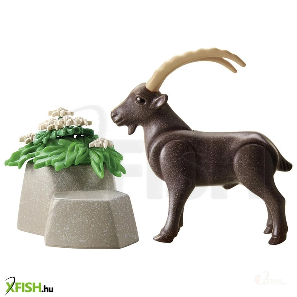 A Playmobil készlet tartalmaz egy bakot, egy sziklát havassal és egy állatismereti kártyát. Az állatfigura fejét fel-le billentheti, és mind a négy lábát egyenként mozgathatja