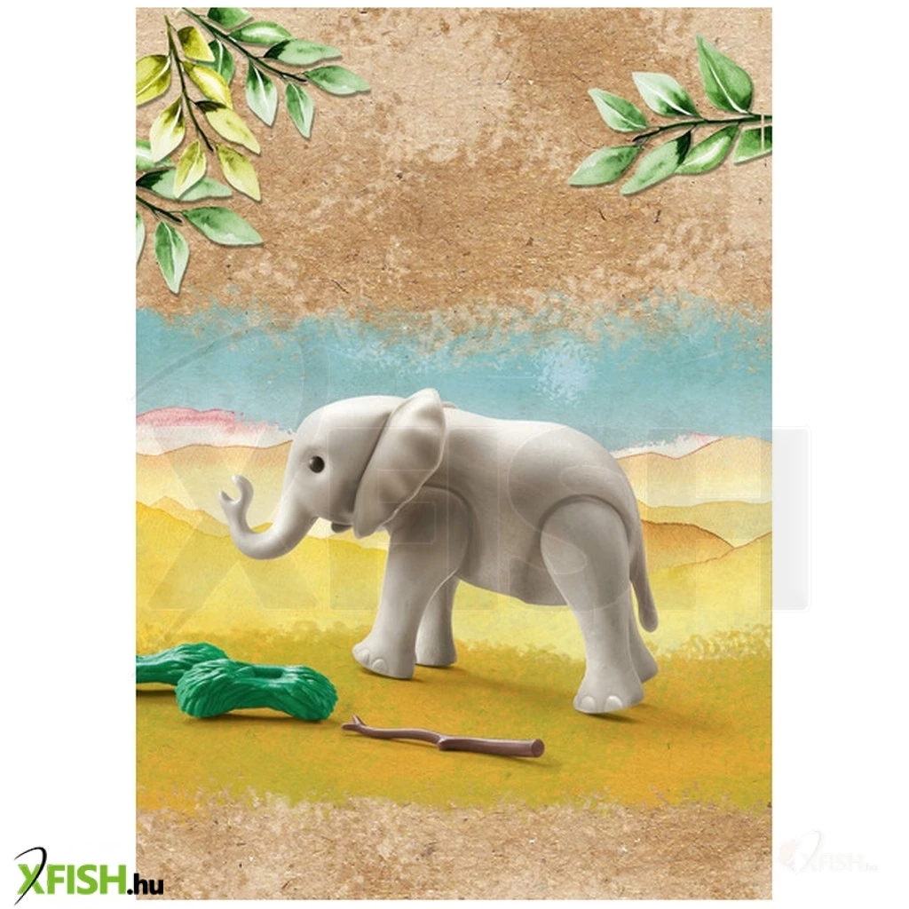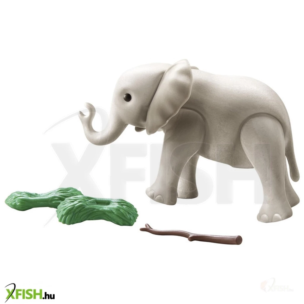 A Playmobil készlet tartalmaz egy elefántot, kiegészítőket és egy állatismereti kártyát. Az állatfigura fejét fel-le billentheti, és mind a négy lábát egyenként mozgathatja