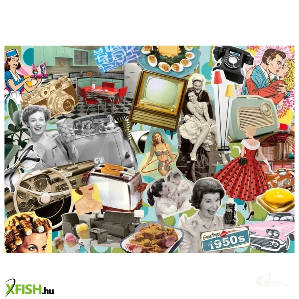 A Ravensburger kiváló minőségű termékei mögött több évtizedes puzzle-gyártási tapasztalat áll, mely garantálja a felejthetetlen puzzle-élményt. A kiváló termékminőség mellett a 2D-s és 3D-s kirakók rendkívül széles választékát nyújtja. A minőség iránti szenvedély, a részletekre való odafigyelés és a motívumok hatalmas választéka teszi a Ravensburger kirakókat olyan egyedivé. Kínálatában kezdőktől a profikig mindenki megtalálja a számára tökéletes puzzle-t! A Ravensburger 1000 db-os - The 50's című képen az 1950-es évek jellegzetes életképeinek, tárgyainak és motívumainak kollázsa látható. Kirakott kép mérete: 70 cm x 50 cm.