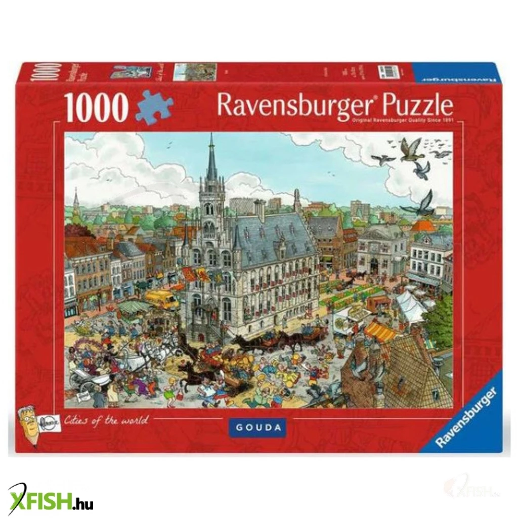 A Ravensburger puzzle – Gouda, 1000 darabos egy részletgazdag és látványos kirakós játék a nagyobb puzzle-rajongóknak és a holland városok, valamint a kulturális látványosságok kedvelőinek. A puzzle Gouda városát ábrázolja, híres csatornáival, történelmi épületeivel és hangulatos utcáival, gazdag színekkel és aprólékos részletekkel, miközben fejleszti a koncentrációt, a finommotorikus készségeket és a problémamegoldó képességet.