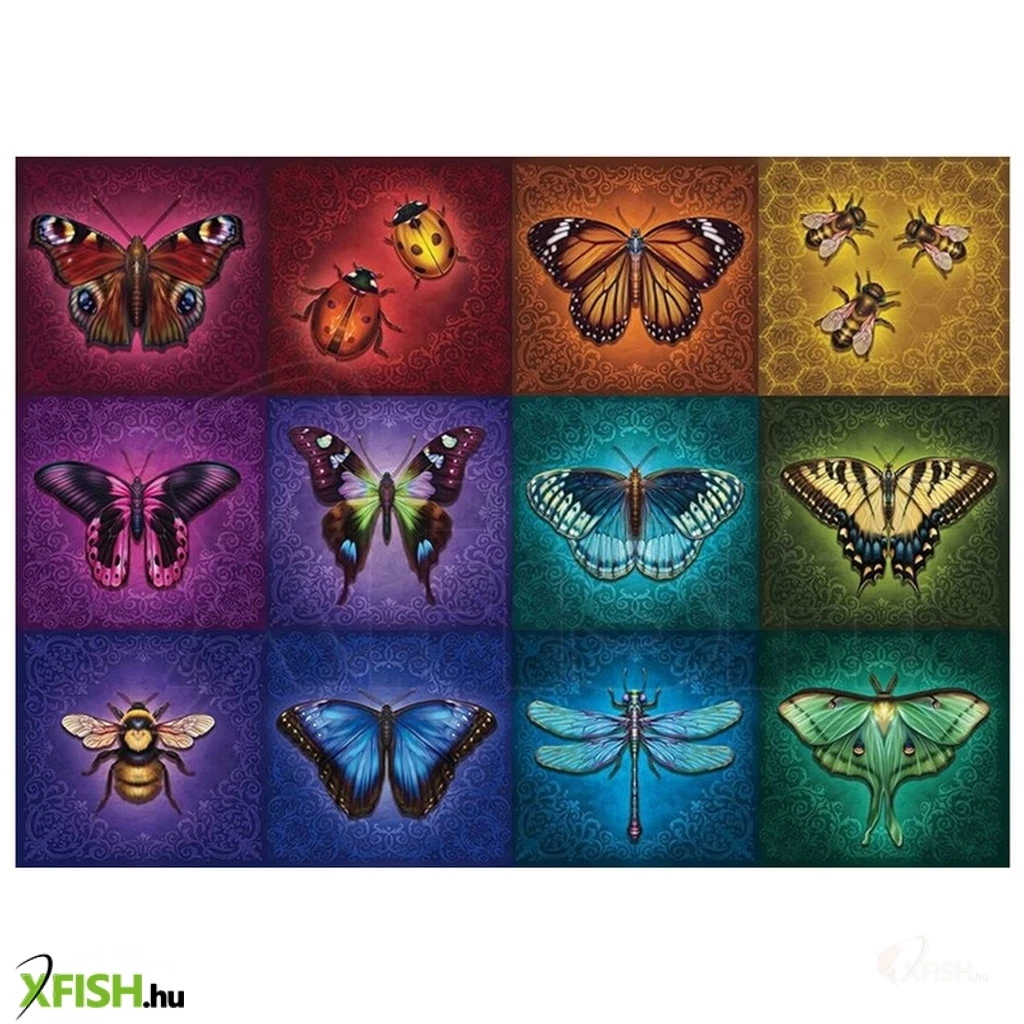 A Ravensburger 1000 db-os puzzle - Szárnyas rovarok című képén pillangók, méhek és katicák láthatók.