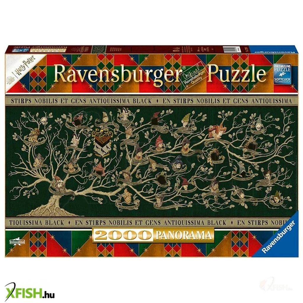 A Ravensburger 2000 db-os Panoráma puzzle - Harry Potter - Családfa képen a varázslóvilágban jól ismert Black család nemzedékeinek sora látható, mely a filmsorozatban egy faliszőnyegre volt festve.